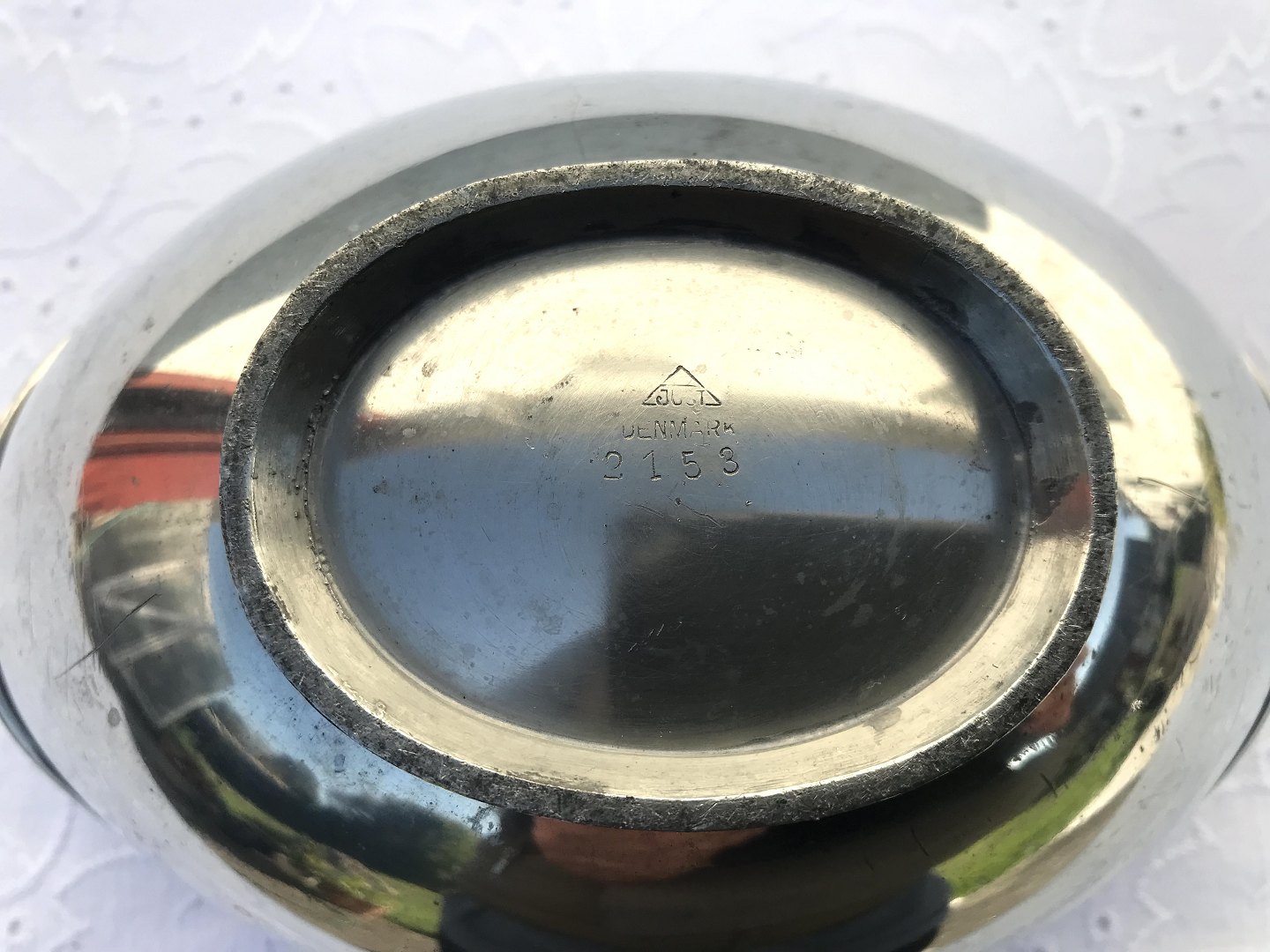 Just Andersen, Tin skål / Blomsterskjuler #2153, 18cm bred, 14cm dyb, 9cm høj *Patineret med mærker m.m.*