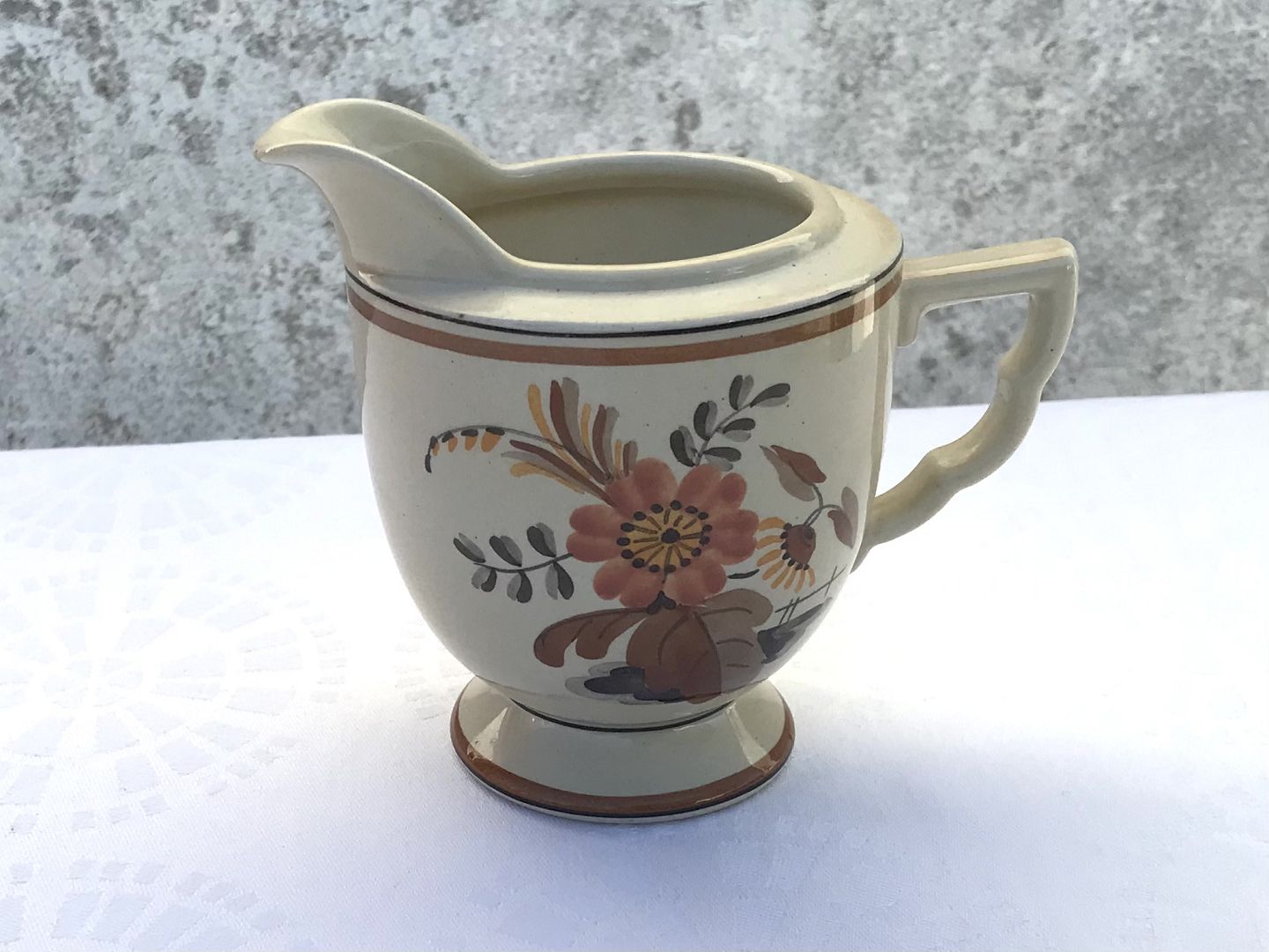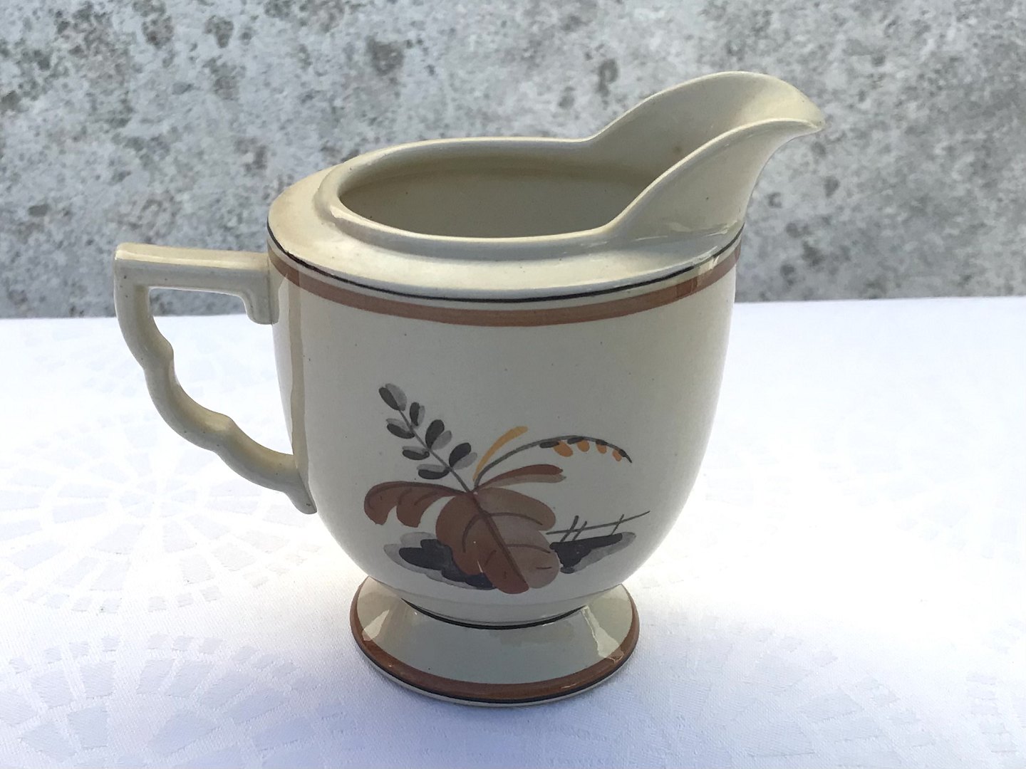 Royal Copenhagen, Aluminia, Victoria II frame shape, Knud, Cream jug with functional handle, 10cm high, 12cm wide, Design Nils Thorsson * Nice condition *