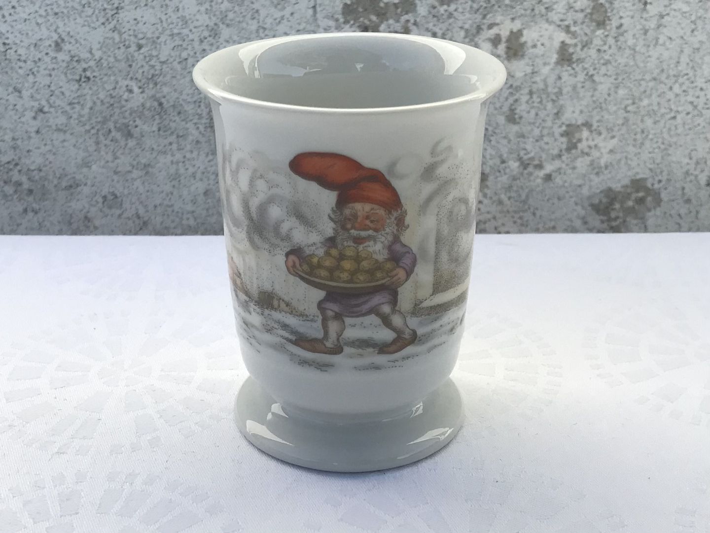 Royal Copenhagen, Jule gløgg krus #6/5436, 10,5cm høj “Nissen & æbleskiverne” 1.sortering *Perfekt stand* “Nissen & æbleskiverne” er et genoptryk af en af de tidligste nissefremstillinger i Danmark fra 1896 af kunstneren H. Larsen.