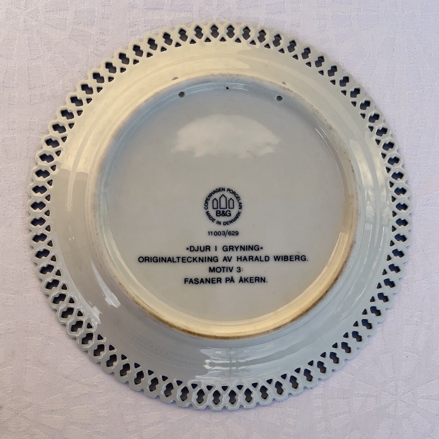 Bing & Grondahl, Platte, Harald Wiberg, Animals at dawn # 1003/629, 20cm in diameter, Pheasants Pia Ahern, Motif No. 3* Perfect condition *