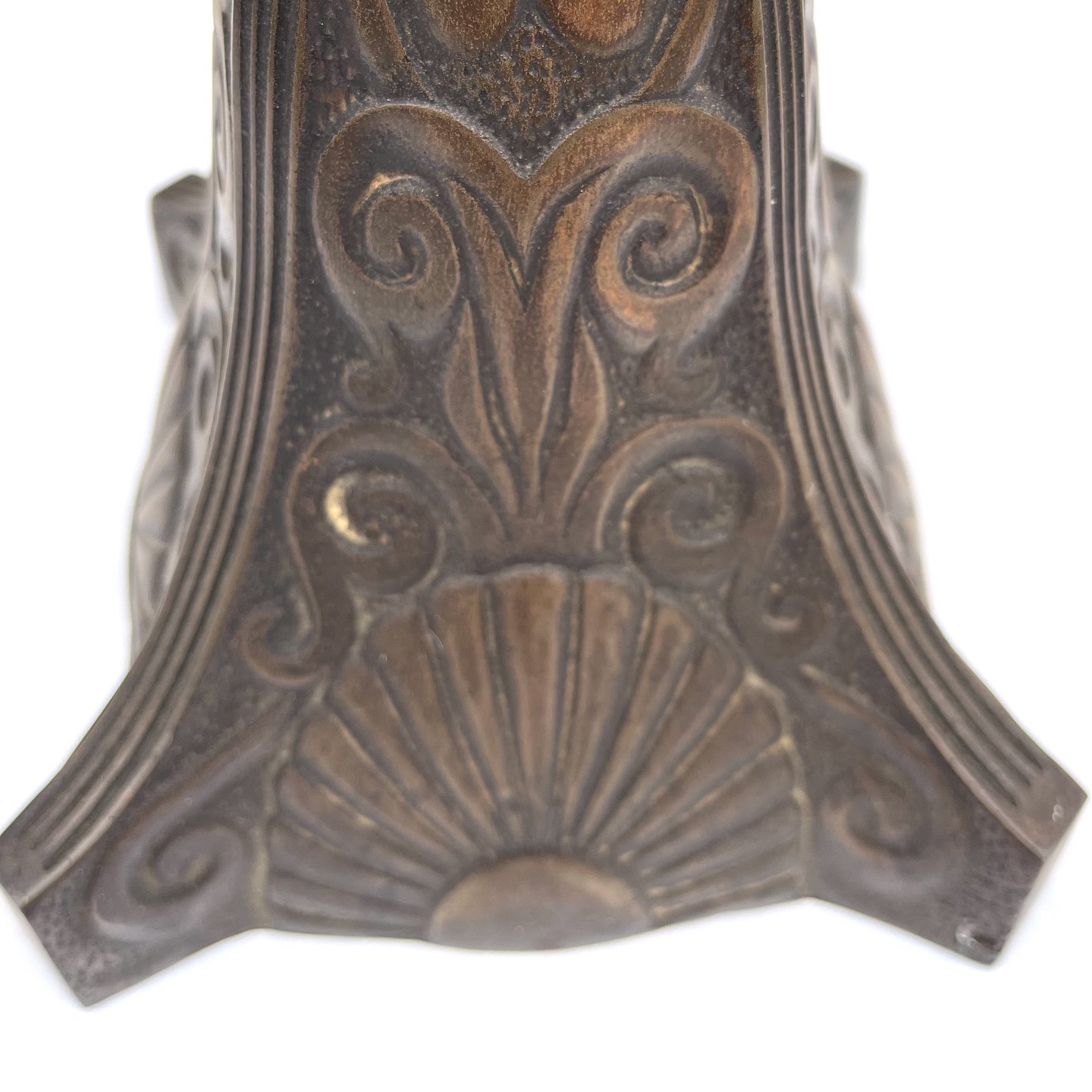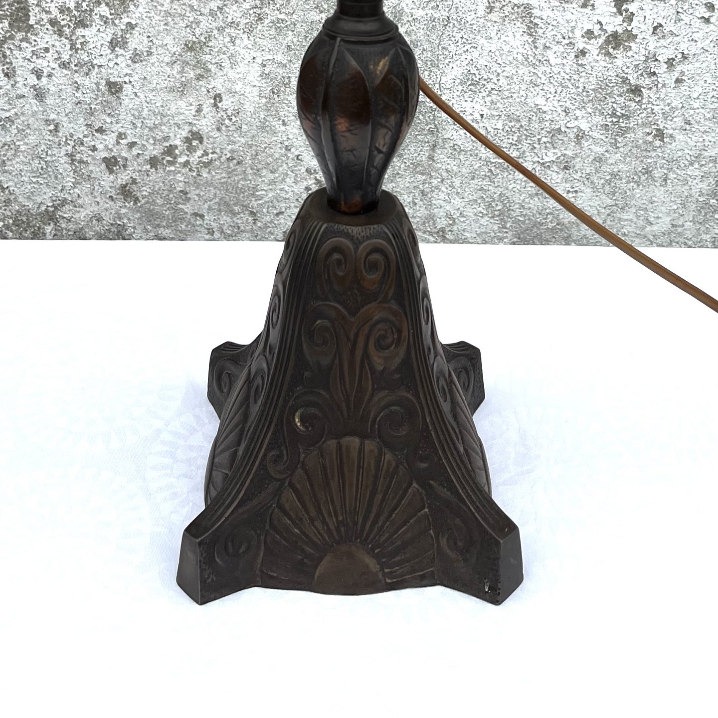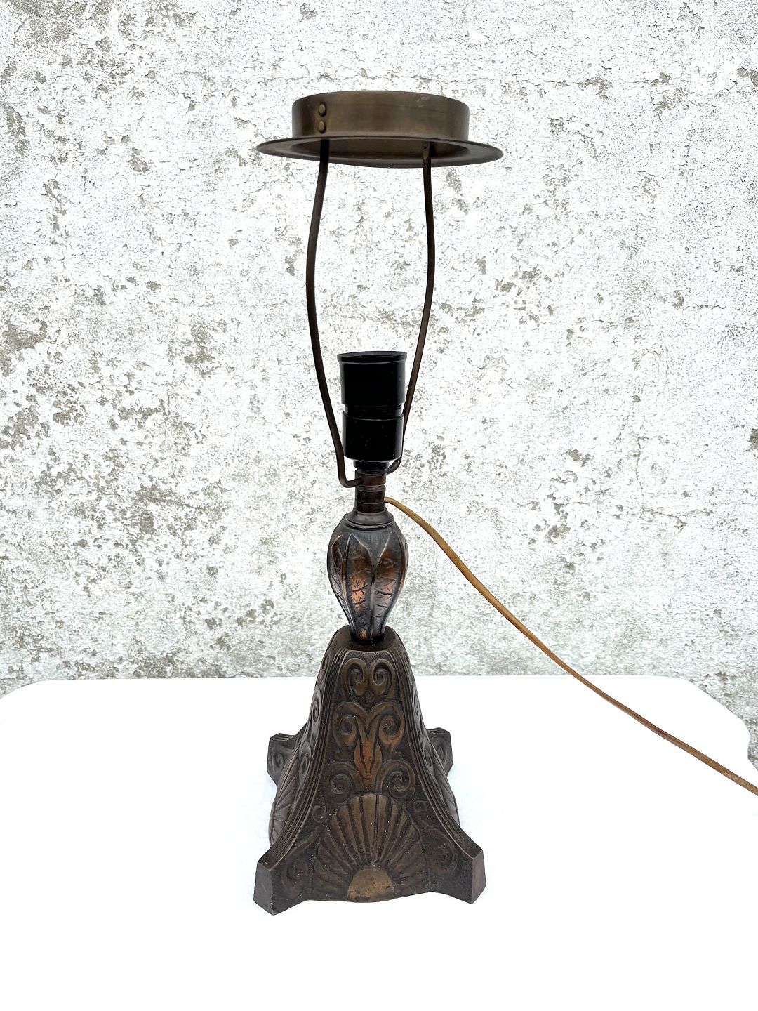 Metal bordlampe med skønvirke mønster på siderne, 46cm høj, 15cm bred *Pæn stand*