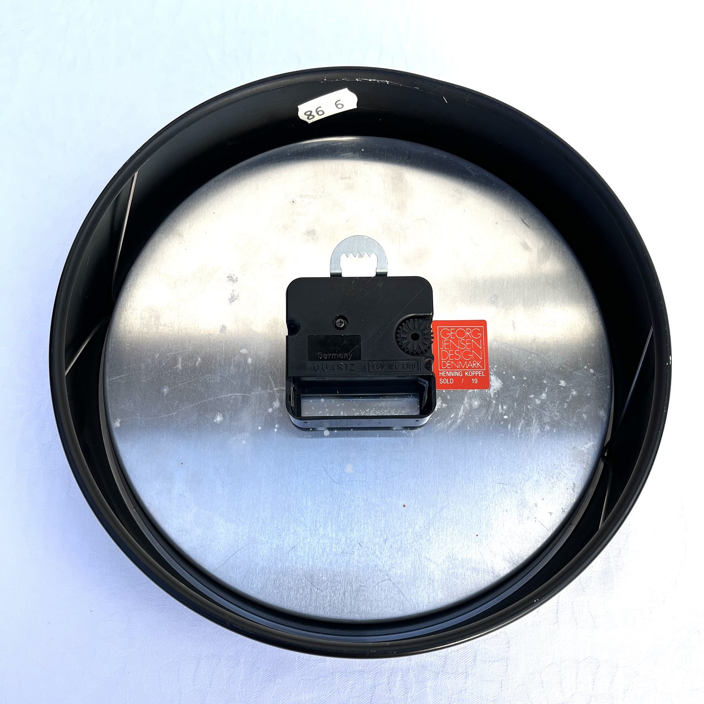 Georg Jensen, Vægur med sort ramme, 22cm i diameter, 6cm dyb, Design Henning Koppel *Med patina*