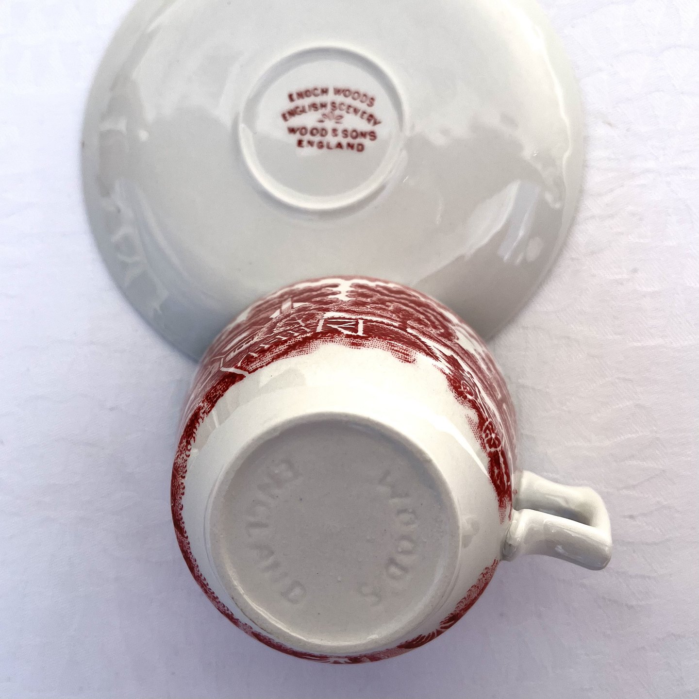 English faience, Enoch Woods, English scenery, Red Paris, Coffee cup, 8cm in diameter, 6cm high * Nice condition *