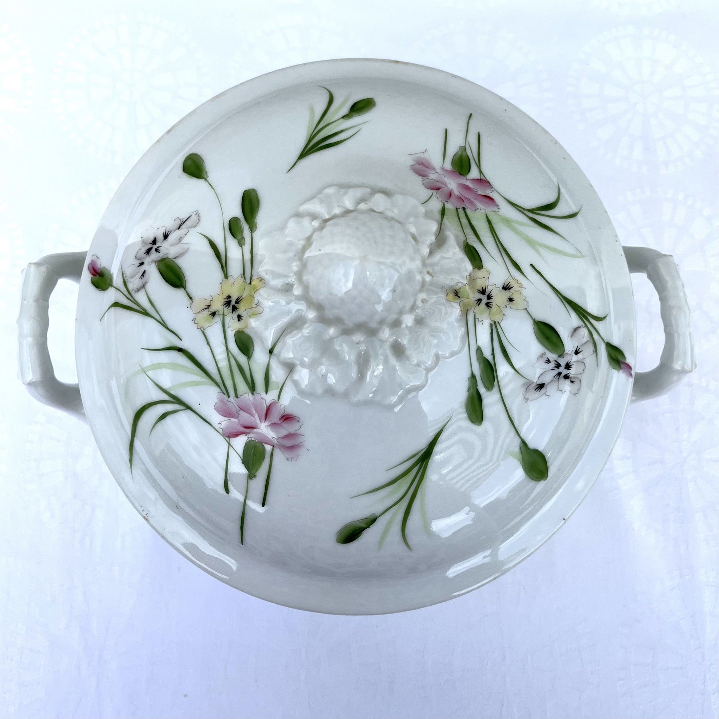 Bing & Grondahl, Antique porcelain with garden carnation motif, Terrin 3B & G, 27cm in diameter, 19cm high * Nice condition *