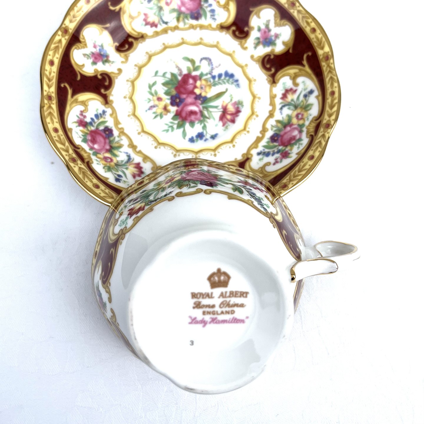 Royal Albert, Lady Hamilton, Teacup set, 9 cm in diameter, 7 cm high *Nice condition with some unevenness in the gold edge*