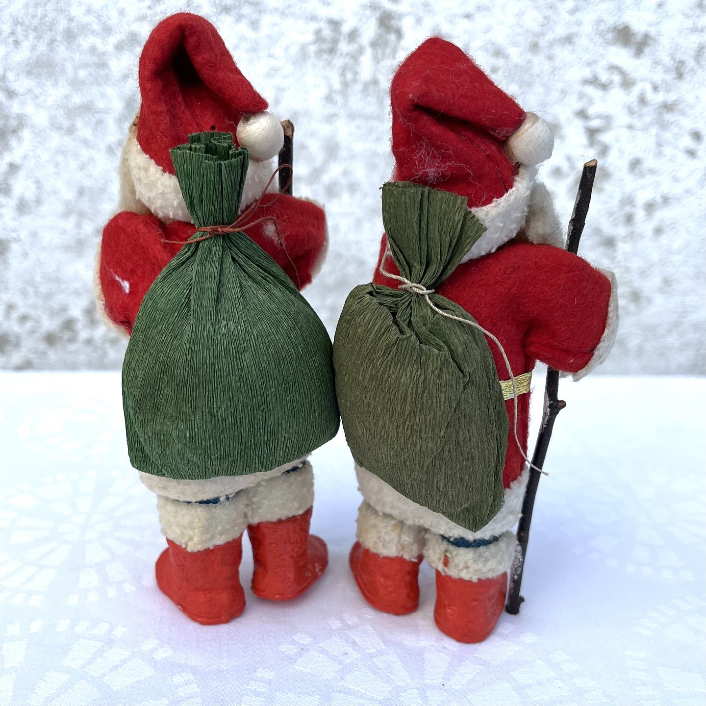 Julemand med gummihoved og vandrestok, 14cm høj 9cm i diameter *Pæn patineret stand*
