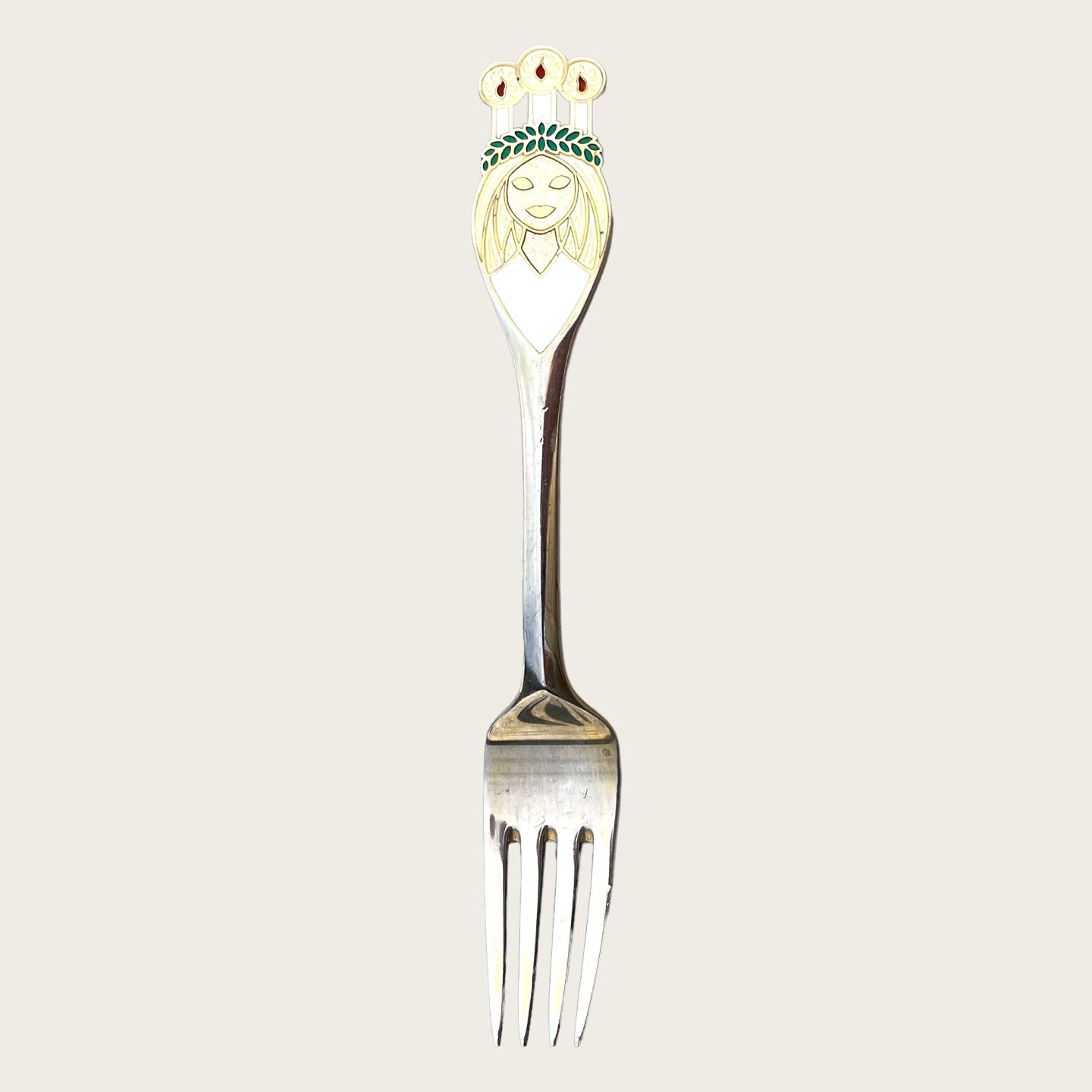 A. Michelsen, Juleske, 1959, Forgyldt Sterling sølv, Emaljedekoration, Luciabrud, 16cm lang, Design Henry Thelander, Uden original æske *Med hak på siden ellers pæn stand*