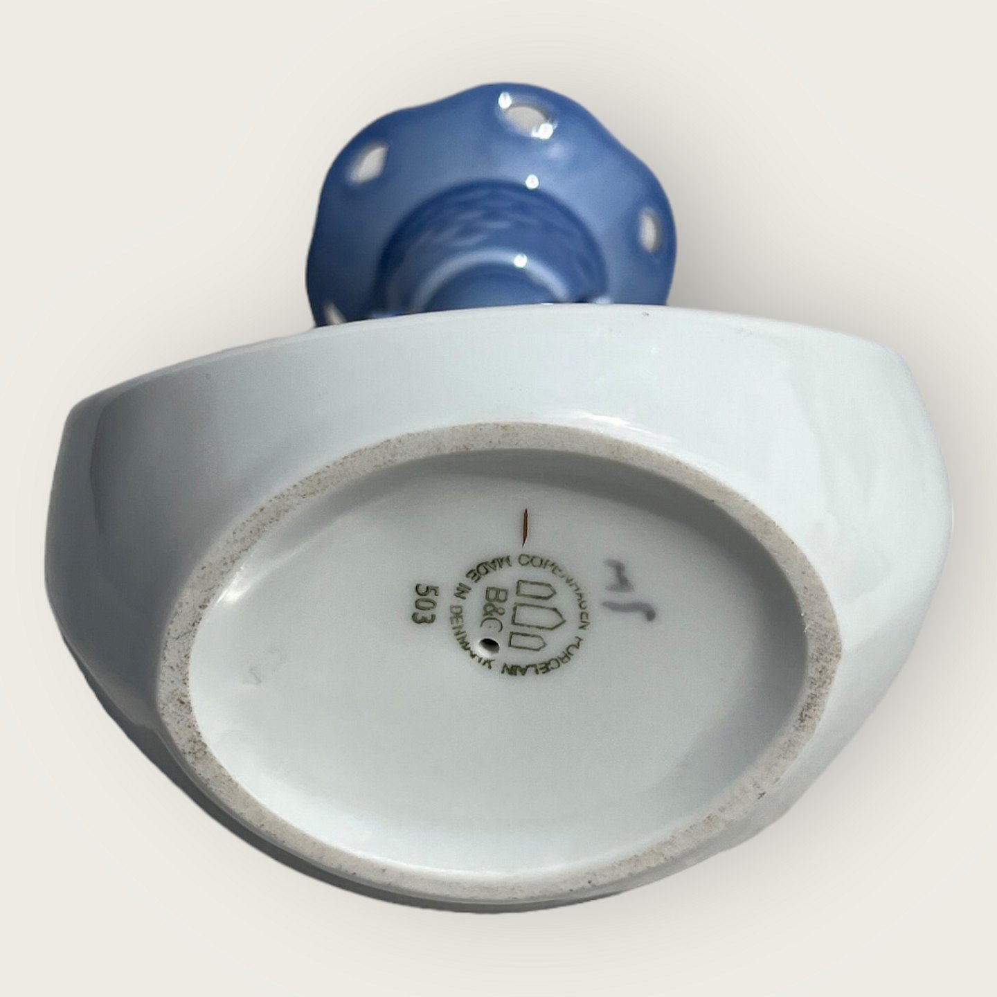 Bing & Grøndahl, Måge med guld, Lysestage #503, 13cm høj, 11cm bred *Pæn stand*