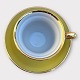 Stor morgenkop, Gul med guldkant, 9cm i diameter, 8cm høj *Pæn stand*