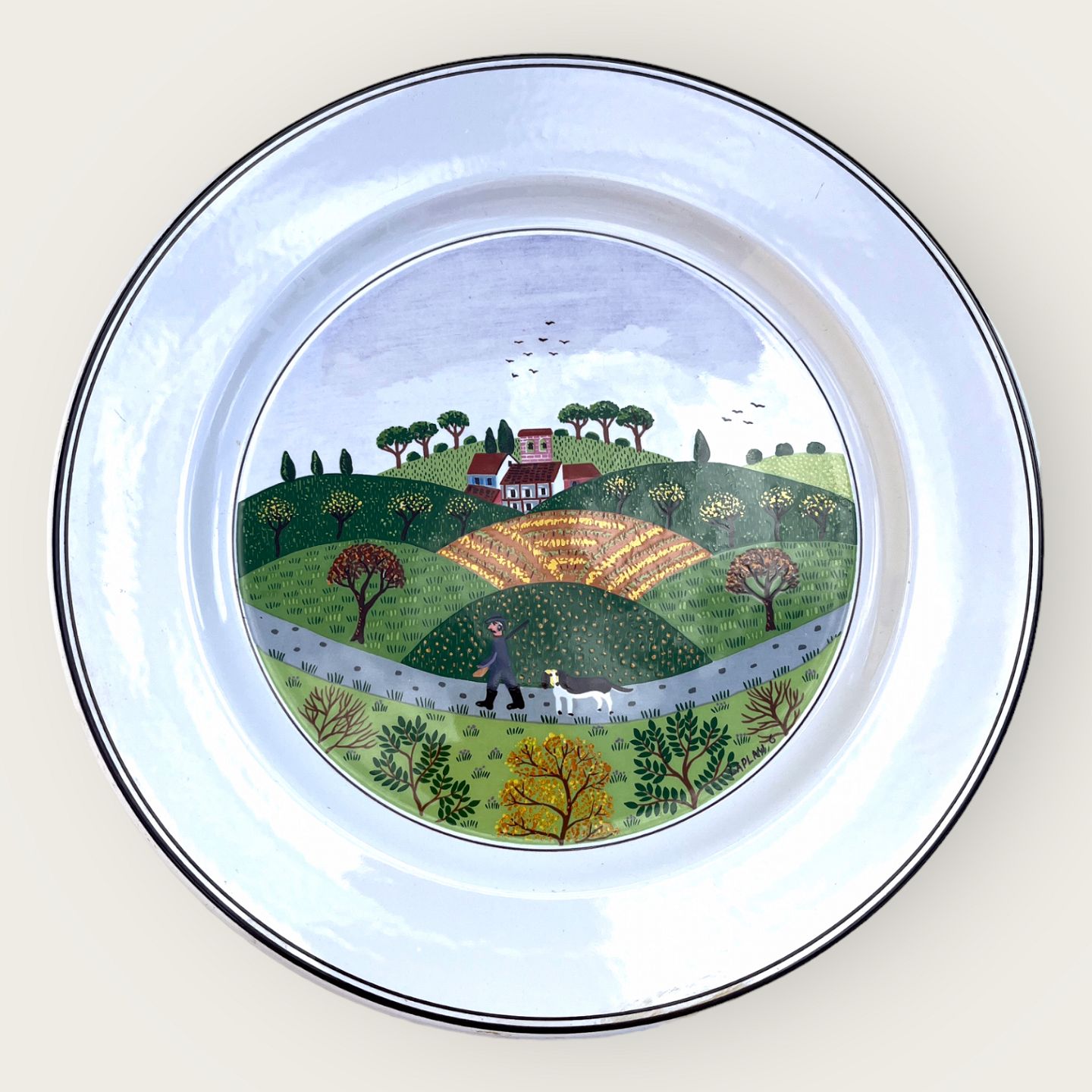 Villeroy & Boch, Naif, Middagstallerken, Landskabs motiv, 27cm i diameter, Design Gérad Laplau *Pæn stand*