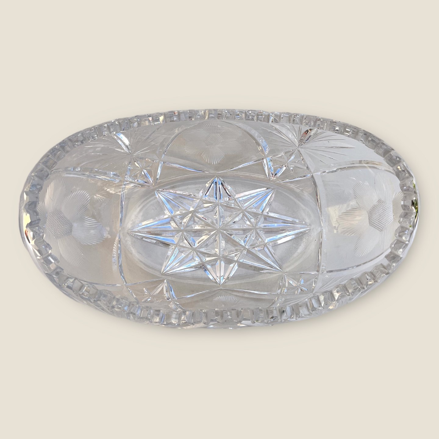 Krystal jadinere, Med slibninger, 34cm bred, 20cm dyb, 16cm høj *Perfekt stand*