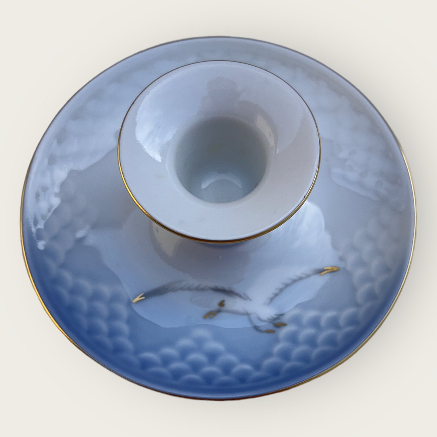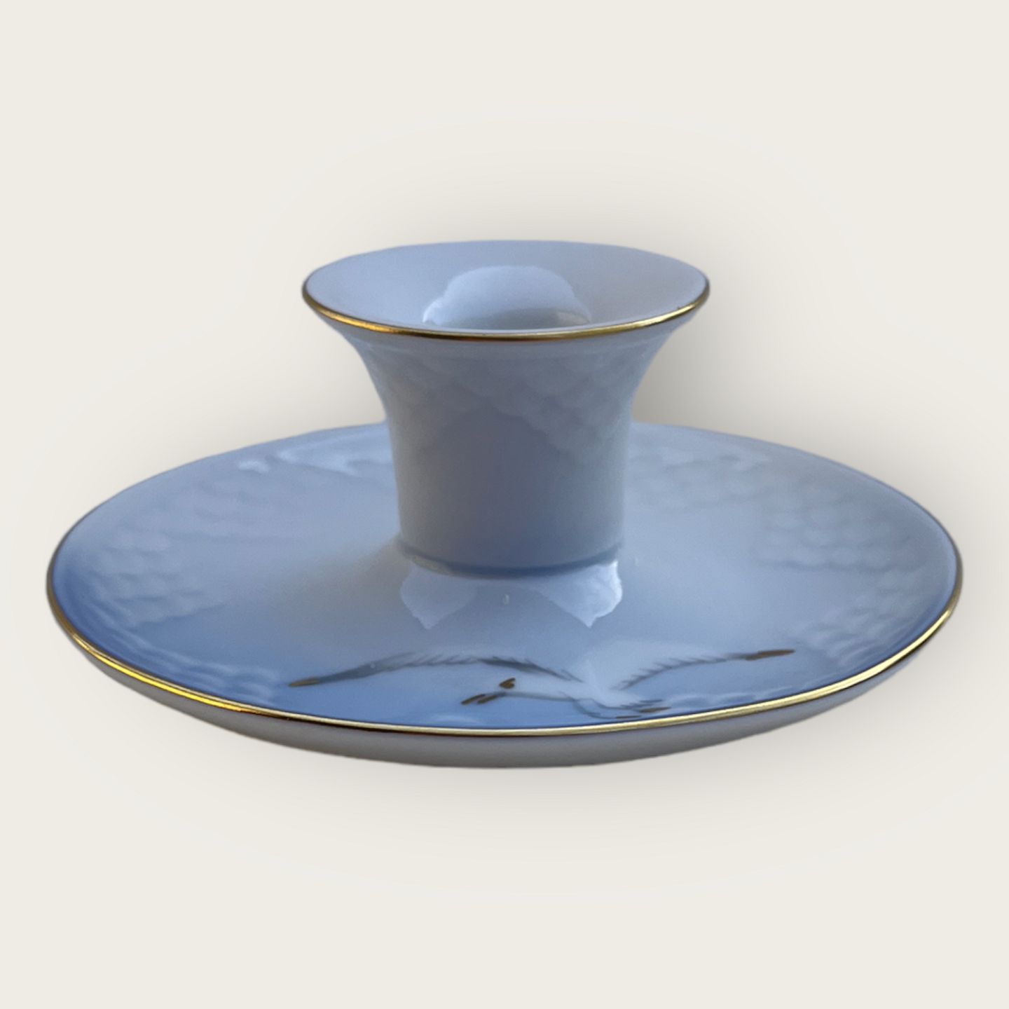 Bing & Grøndahl, Måge med guld, Lysestage #249 #501, 4,5cm høj, 11cm i diameter, 1. og 2.sortering, Design Fanny Garde *Pæn stand*