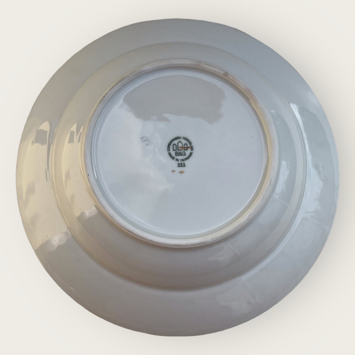 Bing & Grøndahl, Måge med guld, Dyb tallerken #22 #322, 24,5cm i diameter, 1. & 2. Sortering, Design Fanny Garde *Pæn stand*