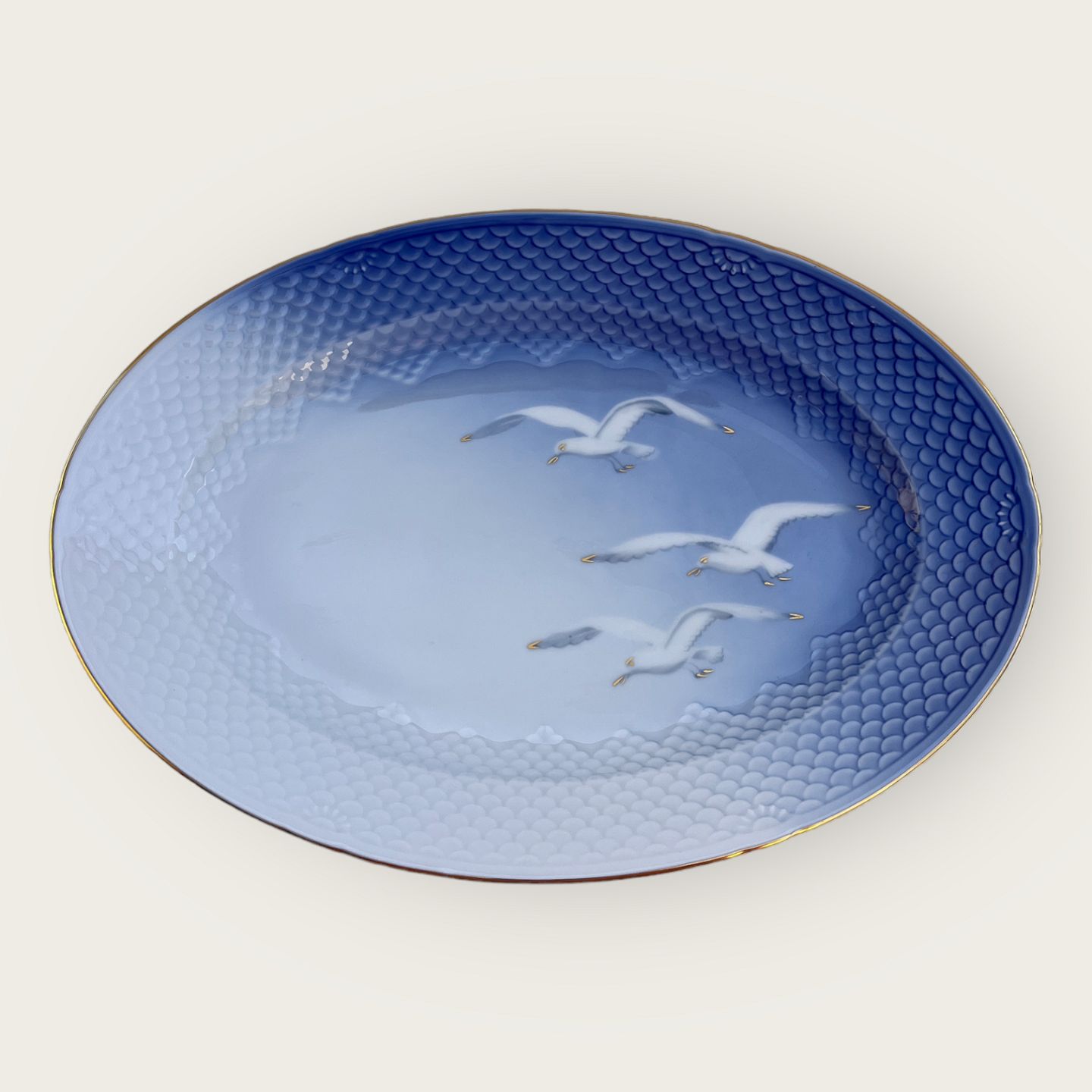 Bing & Grøndahl, Måge med guld, Stort serveringsfad #15, 40cm x 28cm, 2.sortering, Design Fanny Garde *Pæn stand*