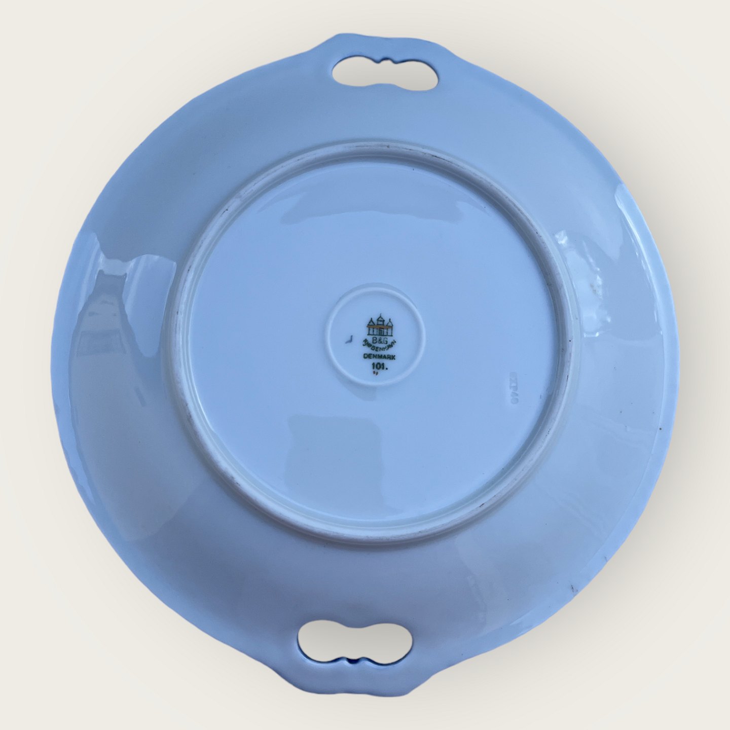 Bing & Grøndahl, Måge med guld, Fad med hanke #101, 27cm i diameter, Design Fanny Garde *Pæn stand*