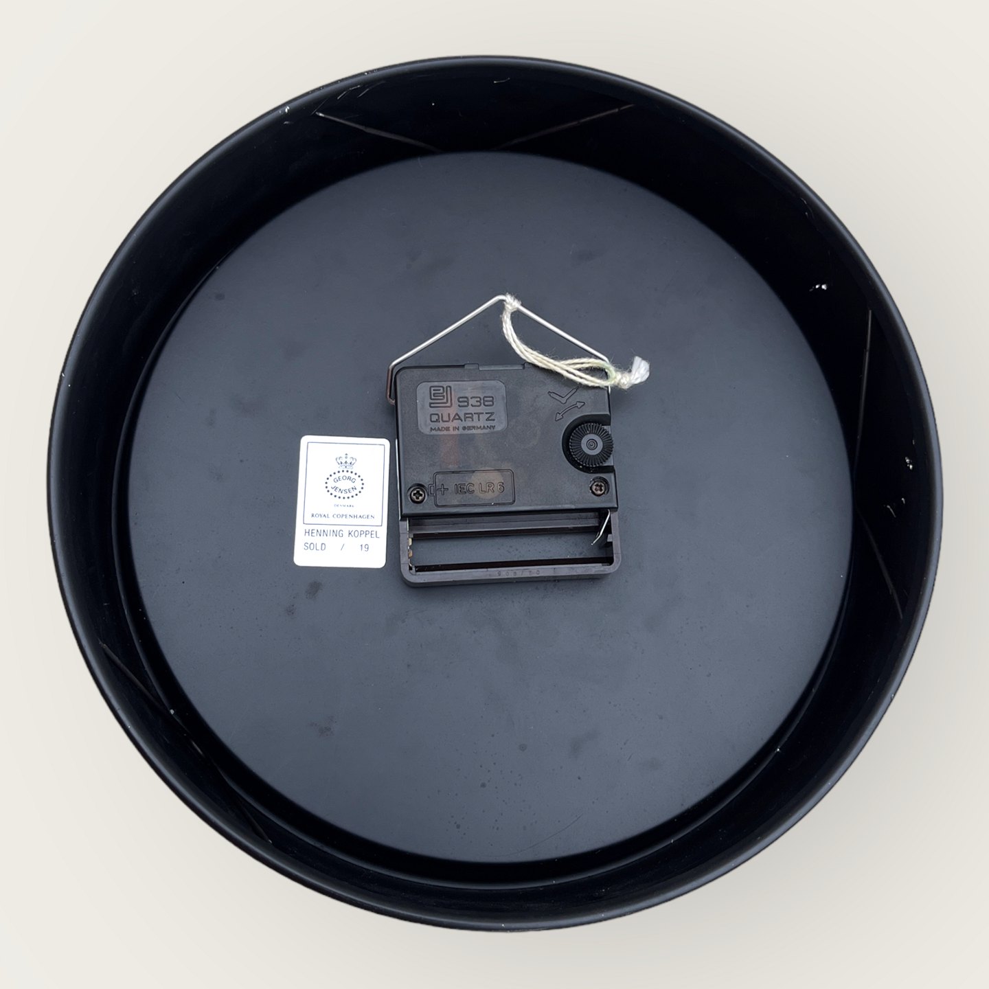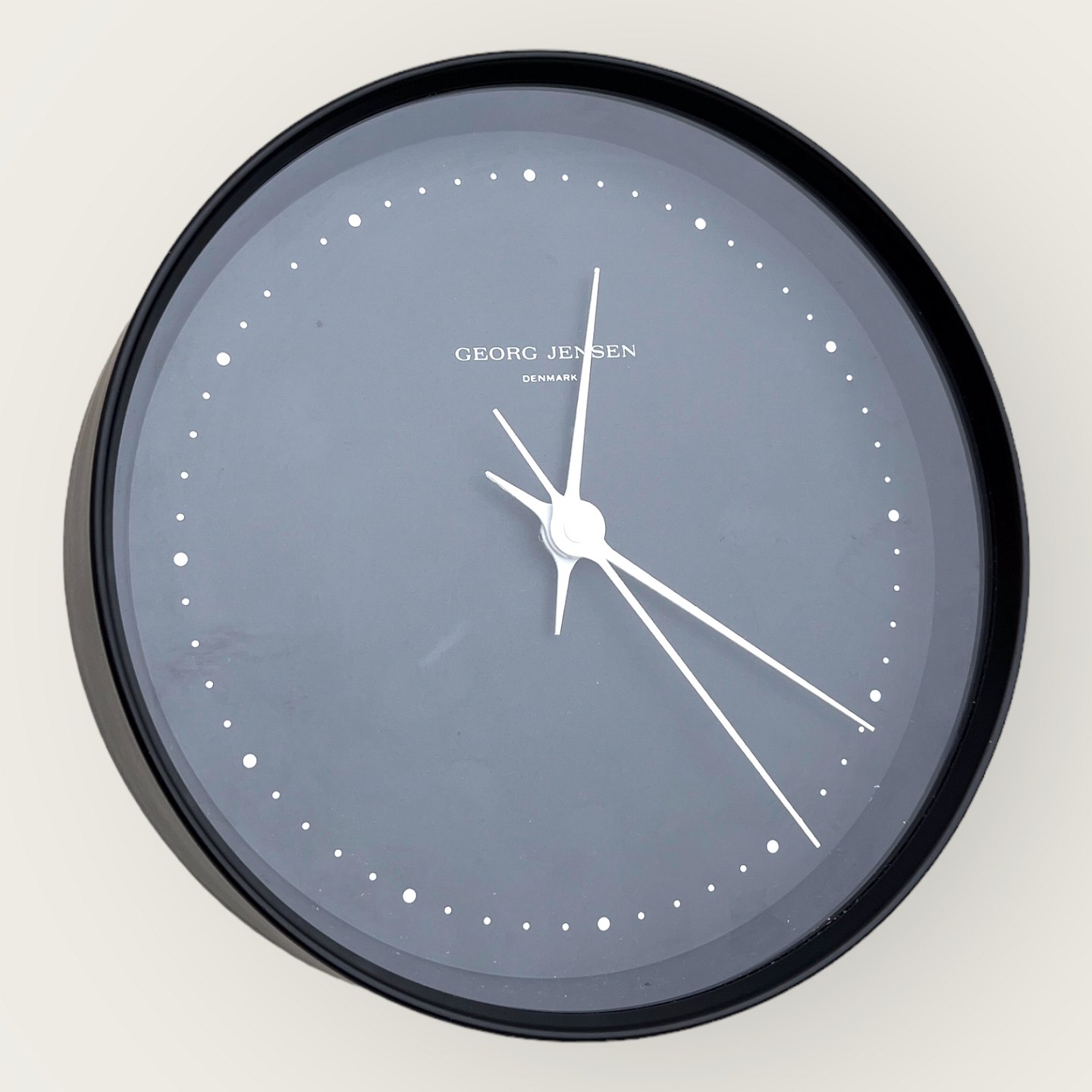 Georg Jensen, Sort vægur med sort ramme, 22cm i diameter, 6cm dyb, Design Henning Koppel *Pæn stand*