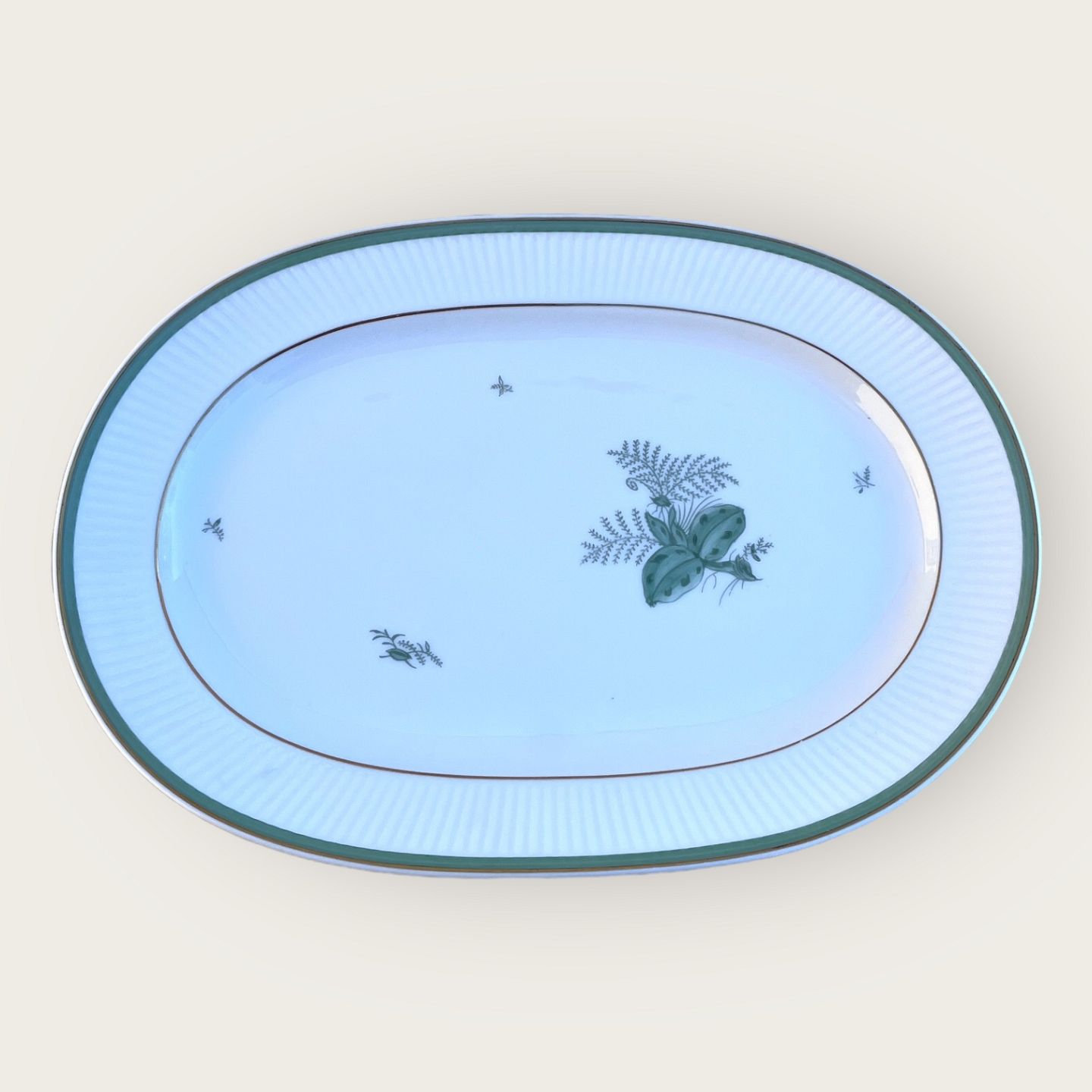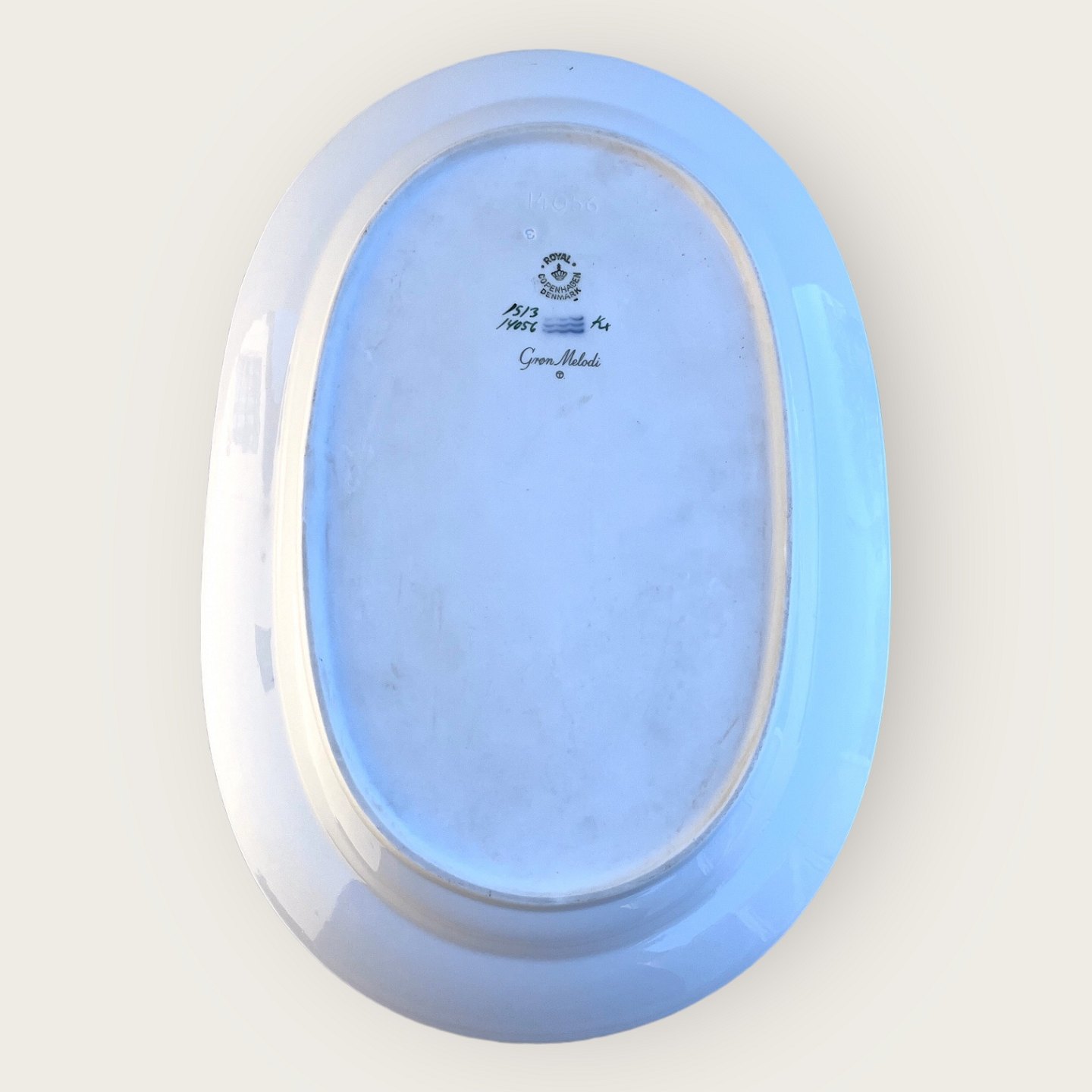 Royal Copenhagen, Grøn melodi, Serveringsfad #1513 / 14056, Serveringsfad, 32,5cm bred, 22cm dyb, 1.sortering, Design Thorkild Olsen *Pæn brugt stand*