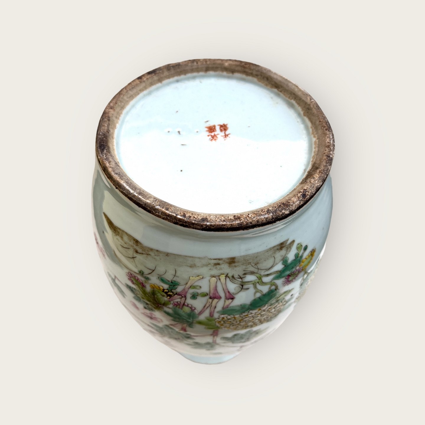 China floor vase with stylized handle, decorated with flower branch motif, 42.5 cm high, 24 cm wide *Nice condition*