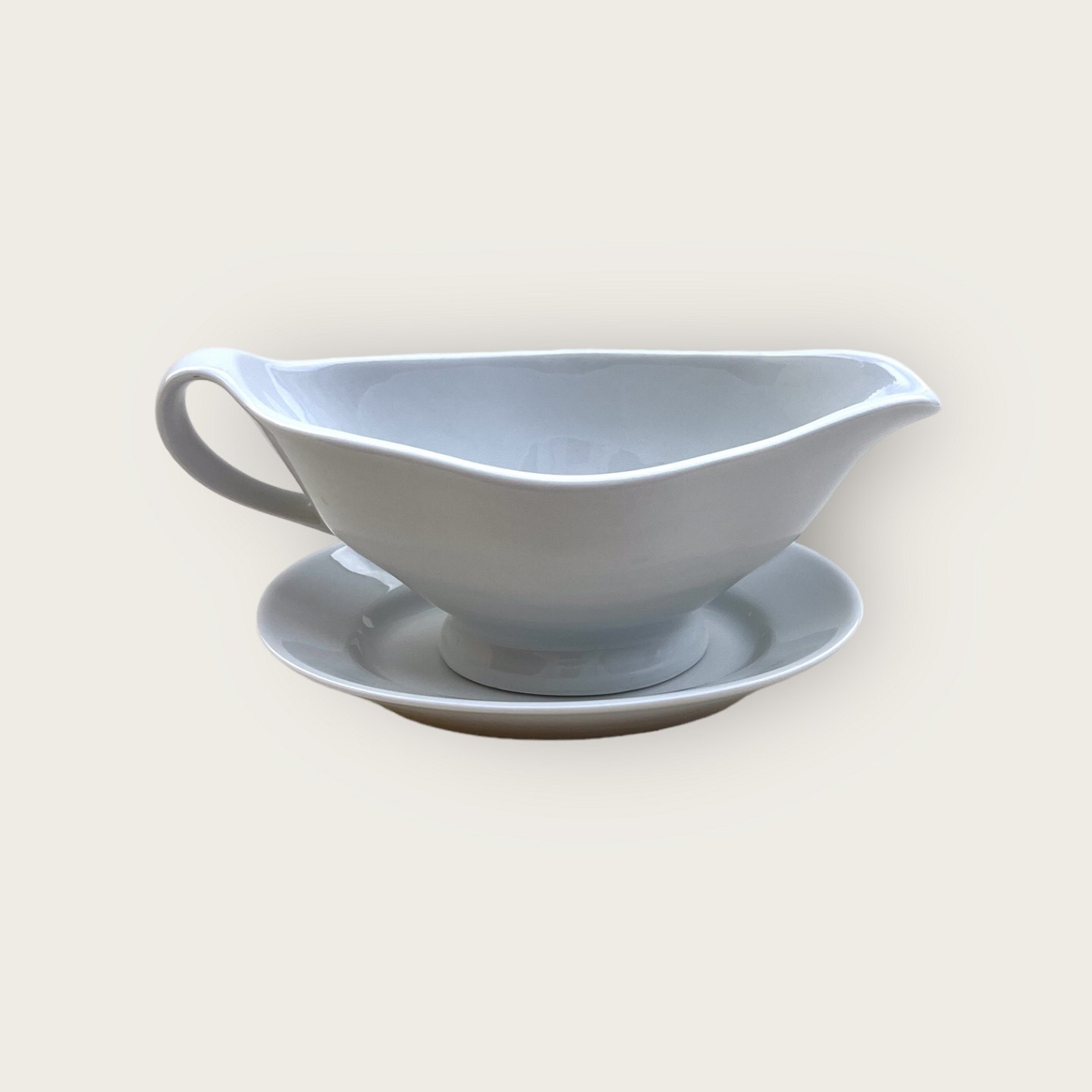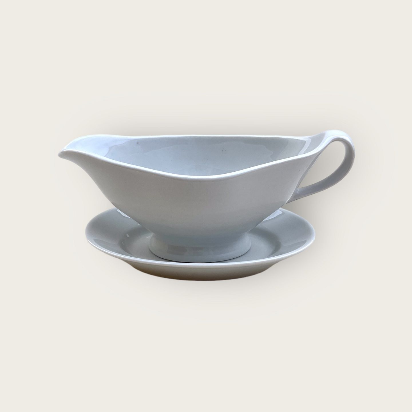 Pillivuyt, Depose, Topf mit Untertasse, 21 cm breit, 9 cm hoch *Perfekter Zustand*