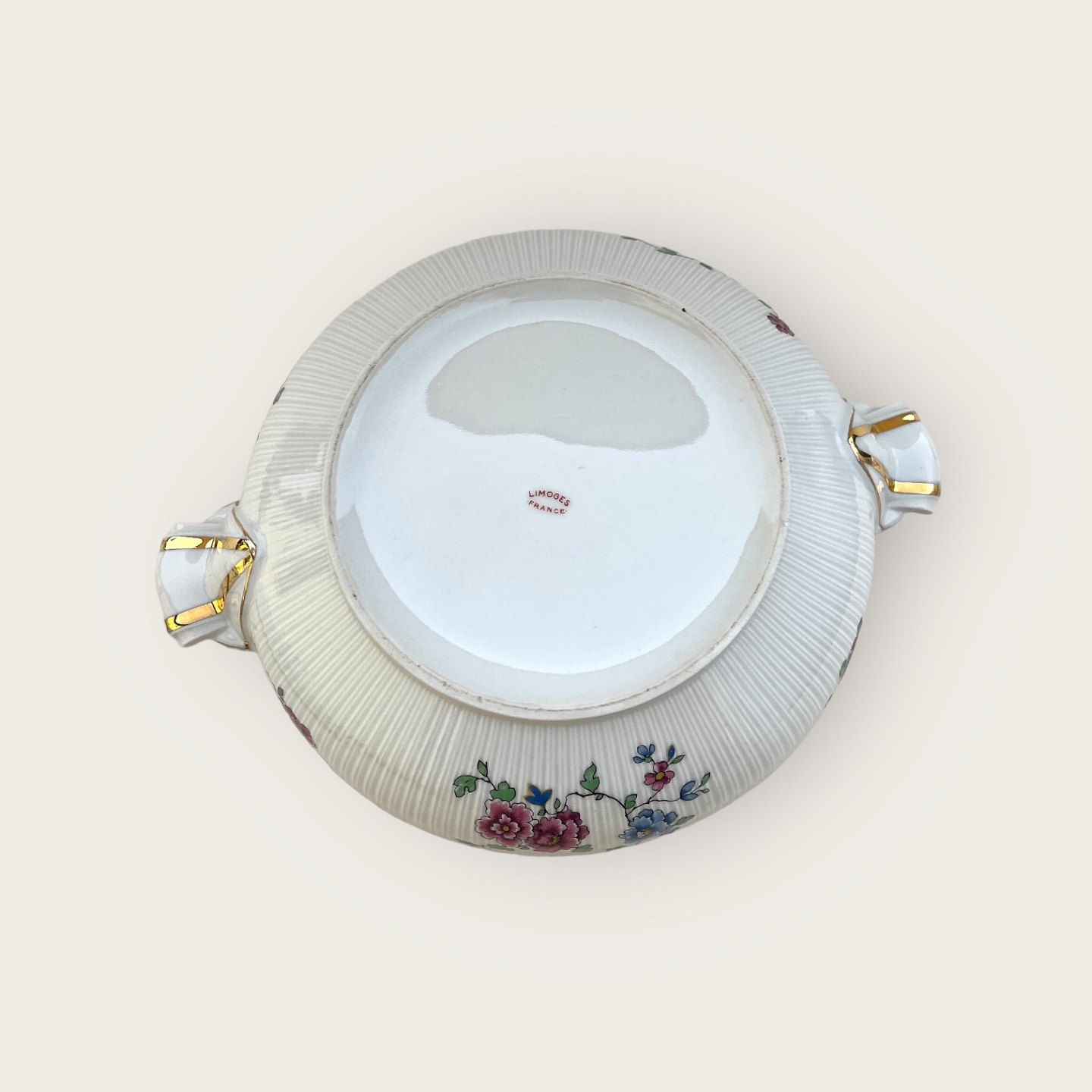 France, Limoges, Lågskål, Blomstermotiv, 26,5cm i diameter, 11,5cm høj *Pæn stand*