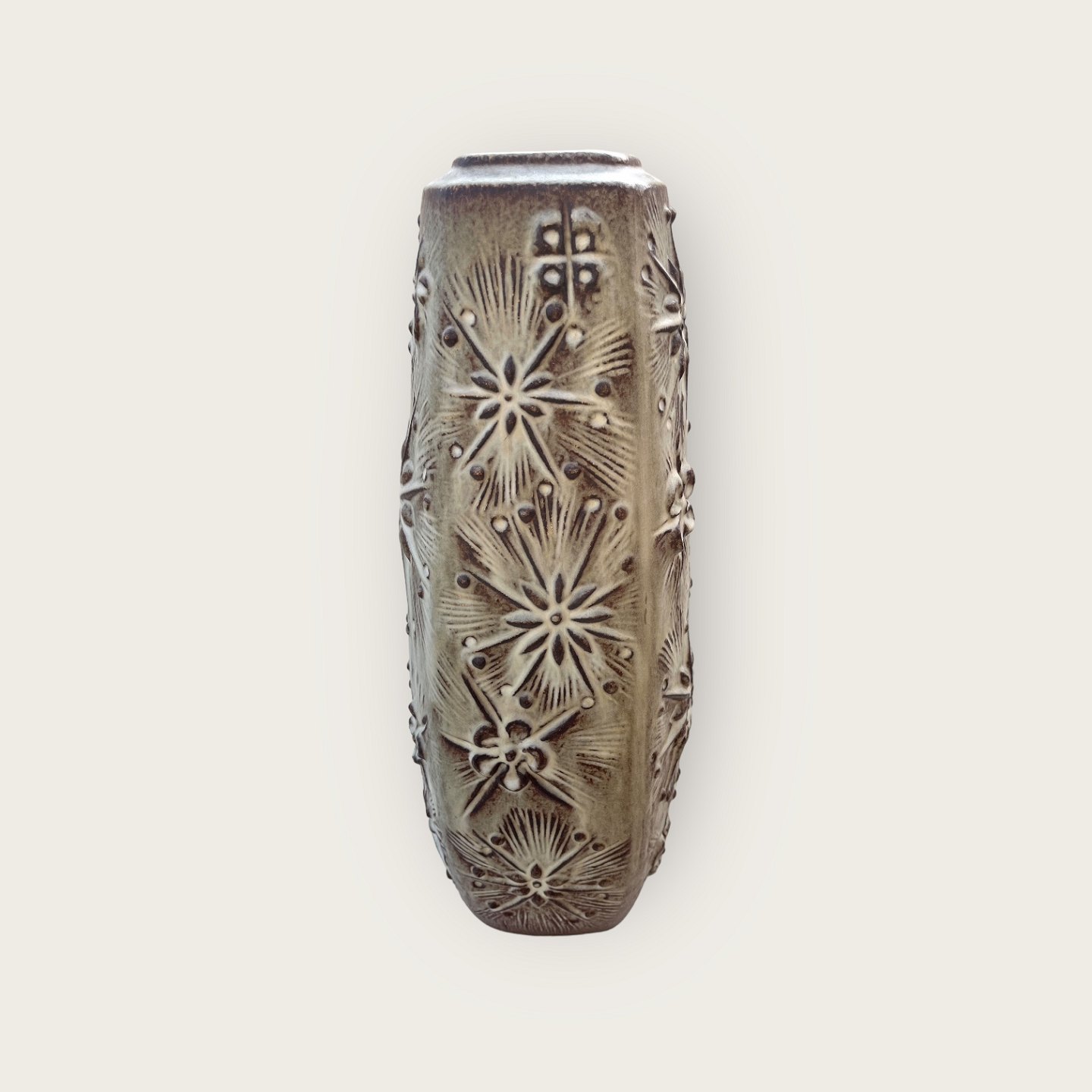 West Germany, Retro Gulvvase, Brun stjernemønster, 47cm høj, 22cm bred *Pæn stand*