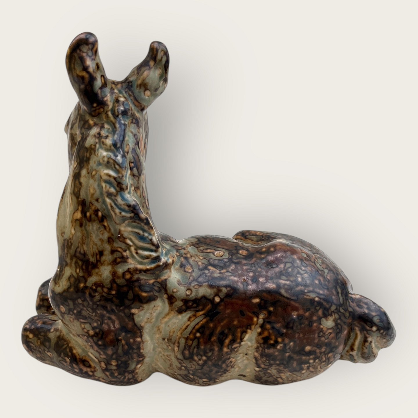 Royal Copenhagen, stentøj, Liggende føl, #21516, 20cm bred, 16cm høj, Medarbejdersortering, Design Knud Kyhn *Pæn stand*