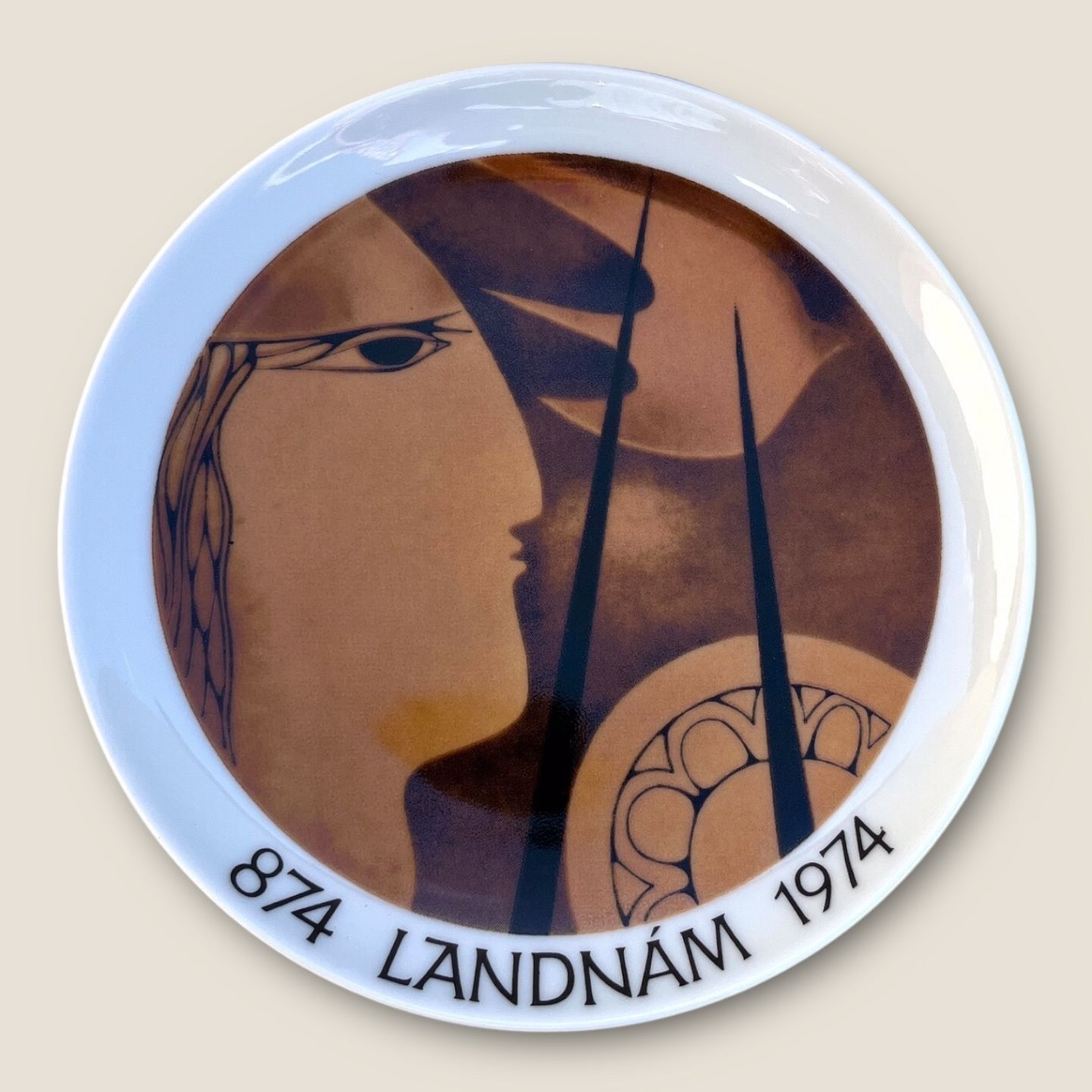 Bing & Grøndahl. Islandsk Jubilæumsplatte, 1100 år, 874 - 1974, 18cm i diameter *Perfekt stand*