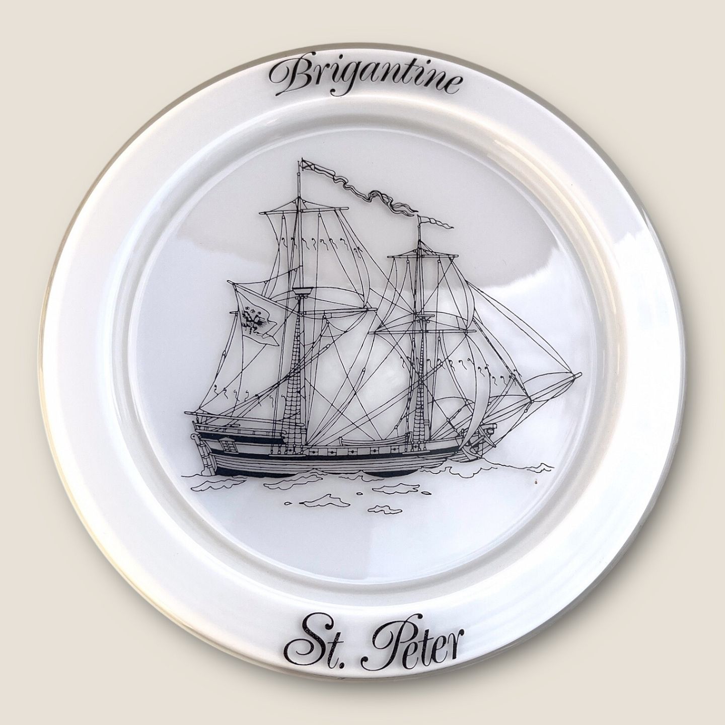 Holmegaard, Skibsplatte, 1981, Brigantine, St. Peter, 19,5cm i diameter, Design Michael Bang *Perfekt stand*