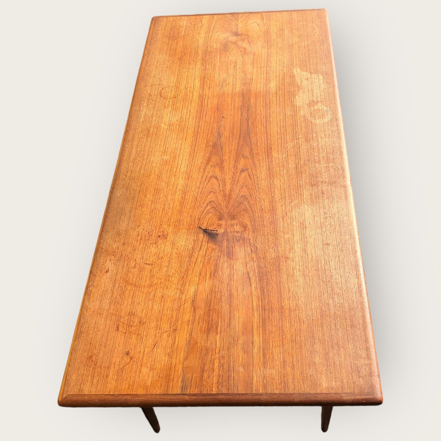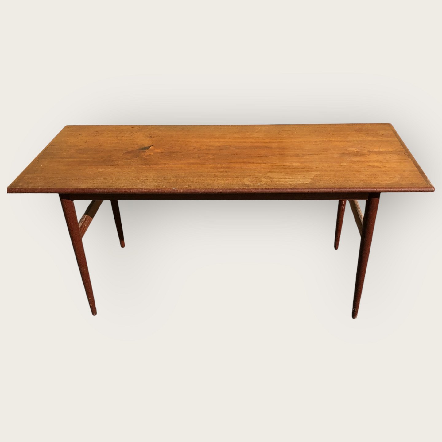 Sofabord i teakfiner, Danish modern fra 1960'erne, Fremstår med brugsspor (se foto), Mål: HxBxL 52x52x120