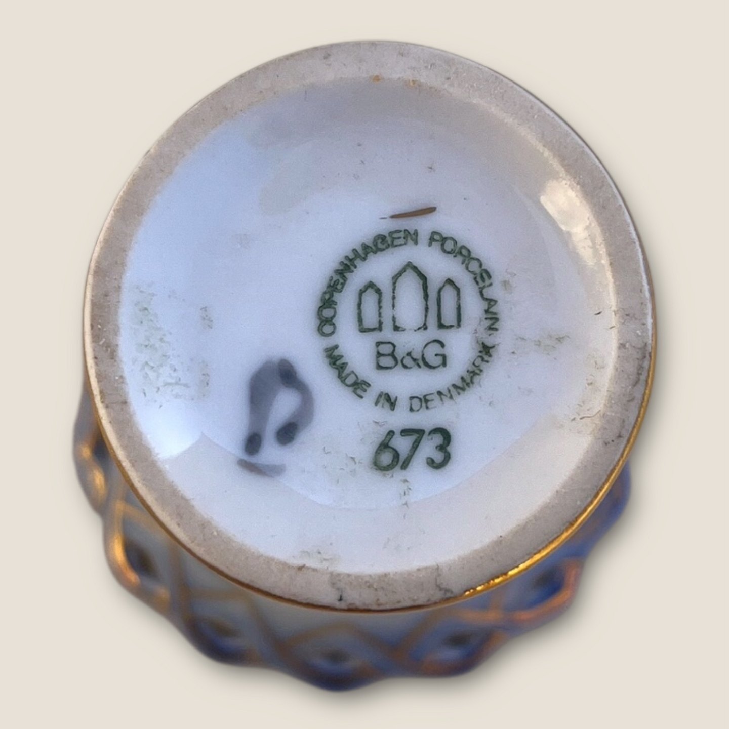 Bing & Grøndahl, Måge med guld, Lille vase med gennembrudt kant, 1. og 2. sortering, 7cm høj, 6cm i diameter, Design Fanny Garde *Pæn stand*