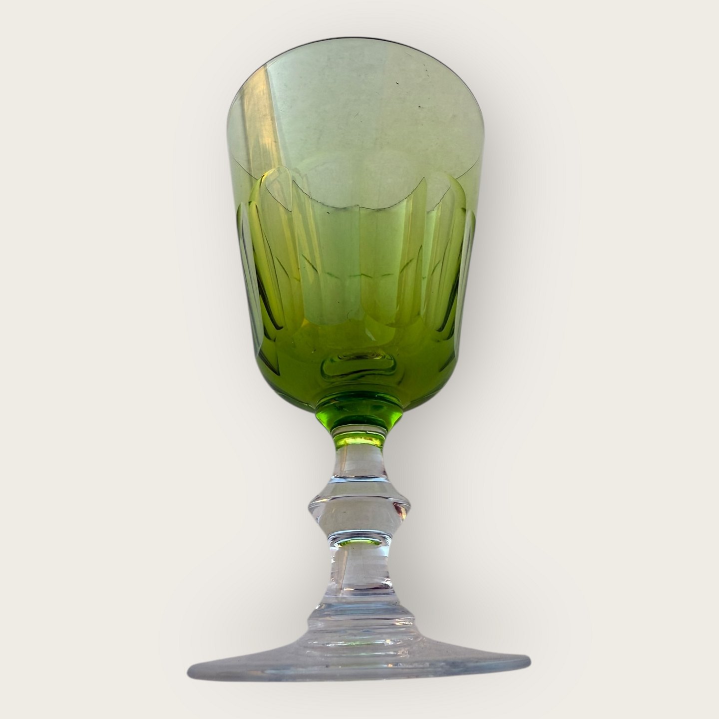 Christian d. VIII, Hvidvinsglas med grøn cuppa, 13 cm højt, Diameter 7cm