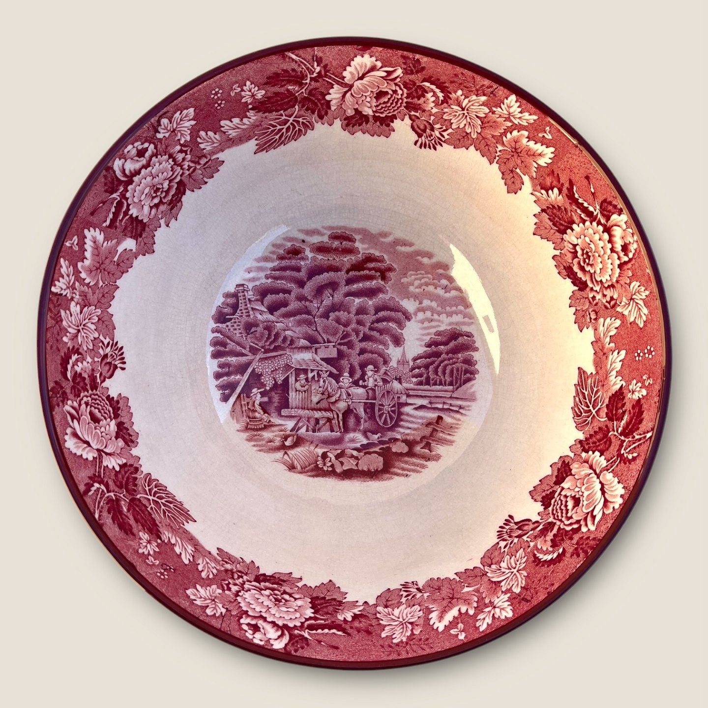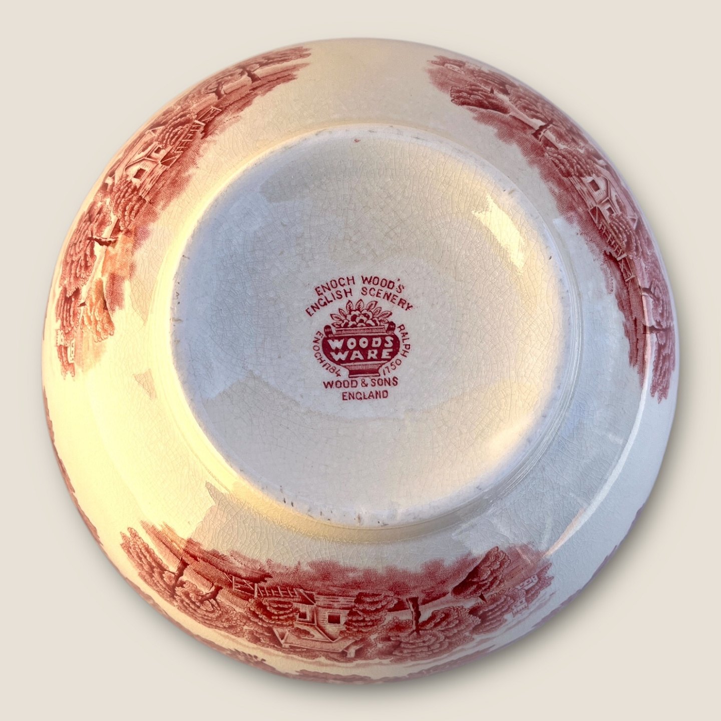 Engelsk fajance, Enoch Woods, English scenery, Rød Paris, Skål, 24,5cm i diameter, 11,5cm høj *Pæn stand*