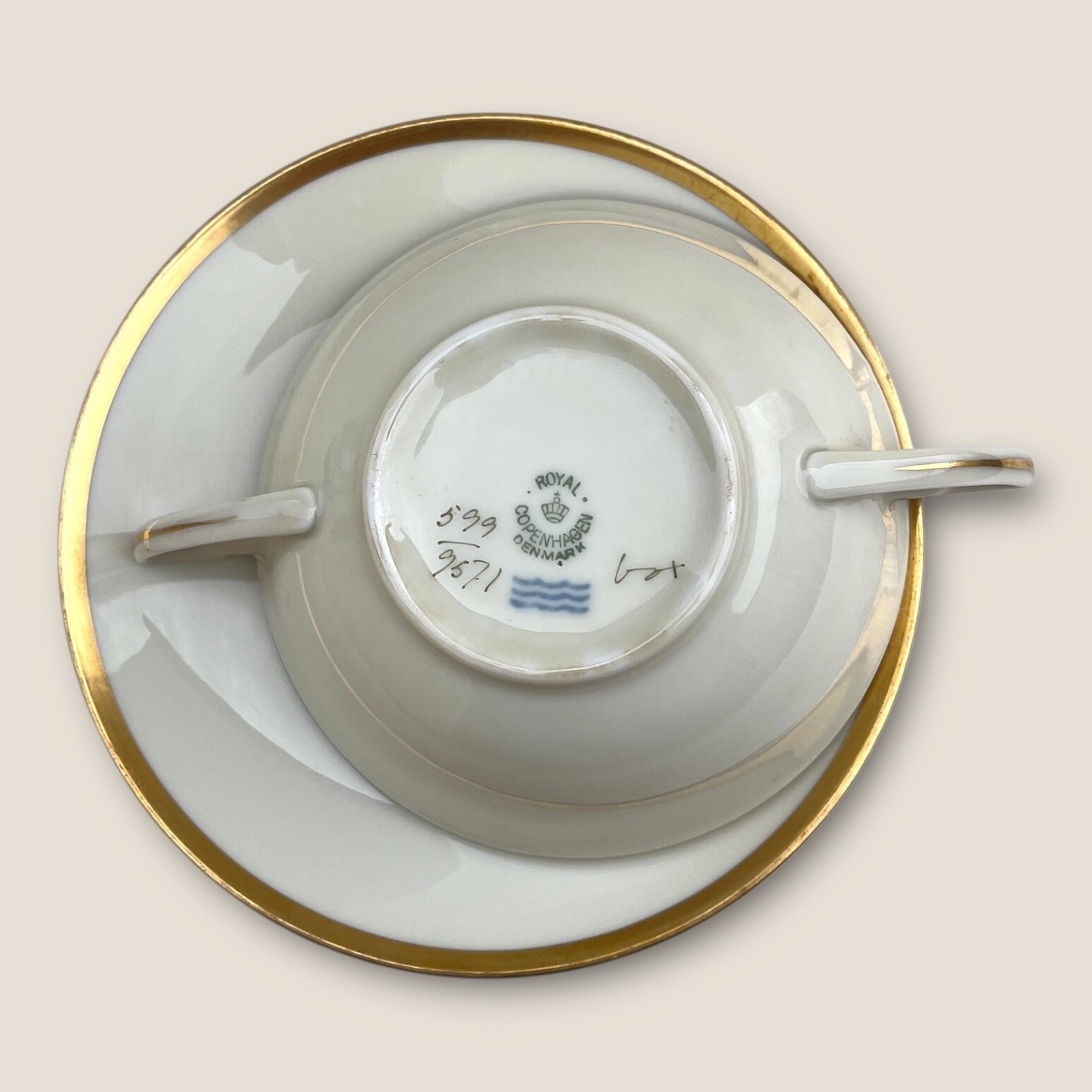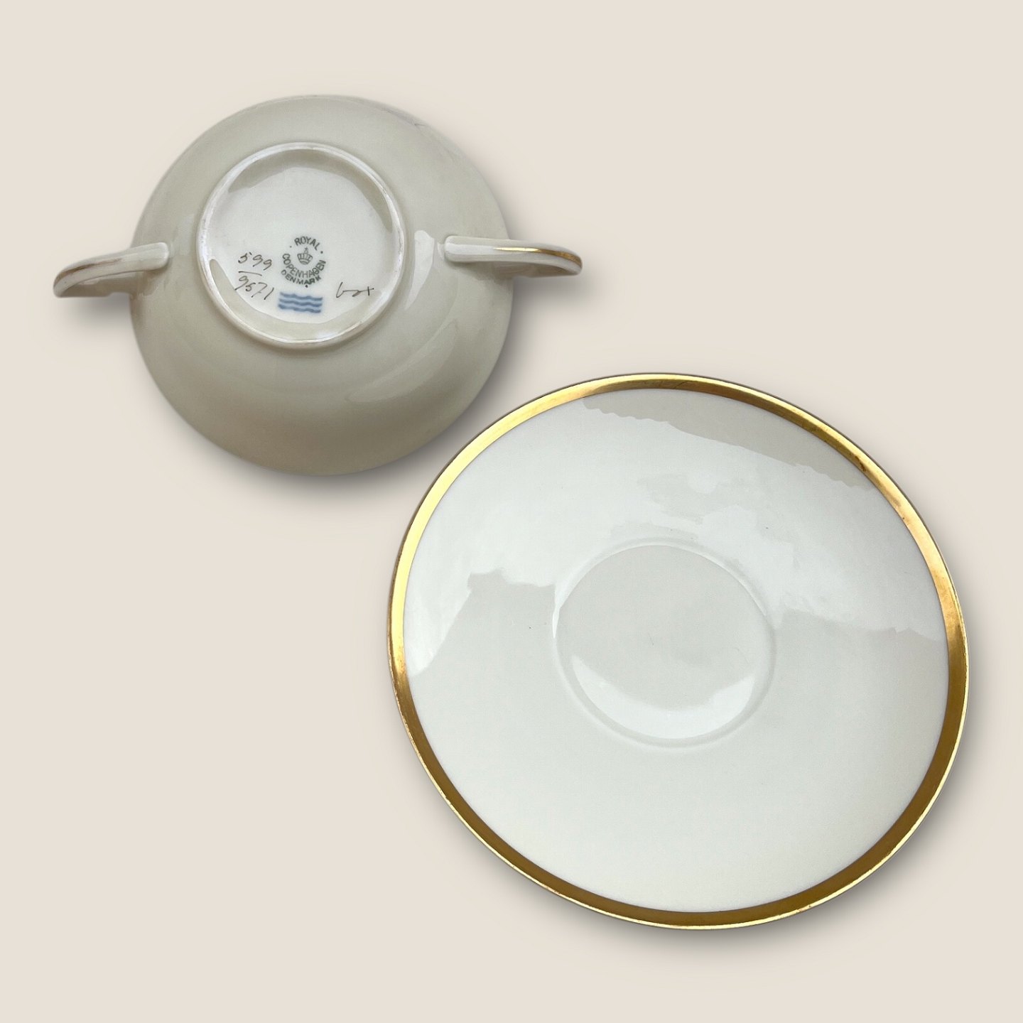 Royal Copenhagen, Bouillonkop, Hvid med guldkant #599/ 9571, 13cm i diameter, 5cm høj *Pæn stand*