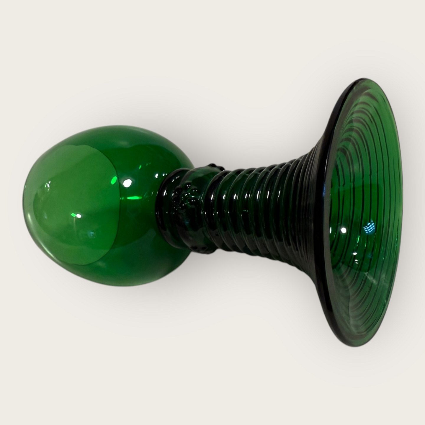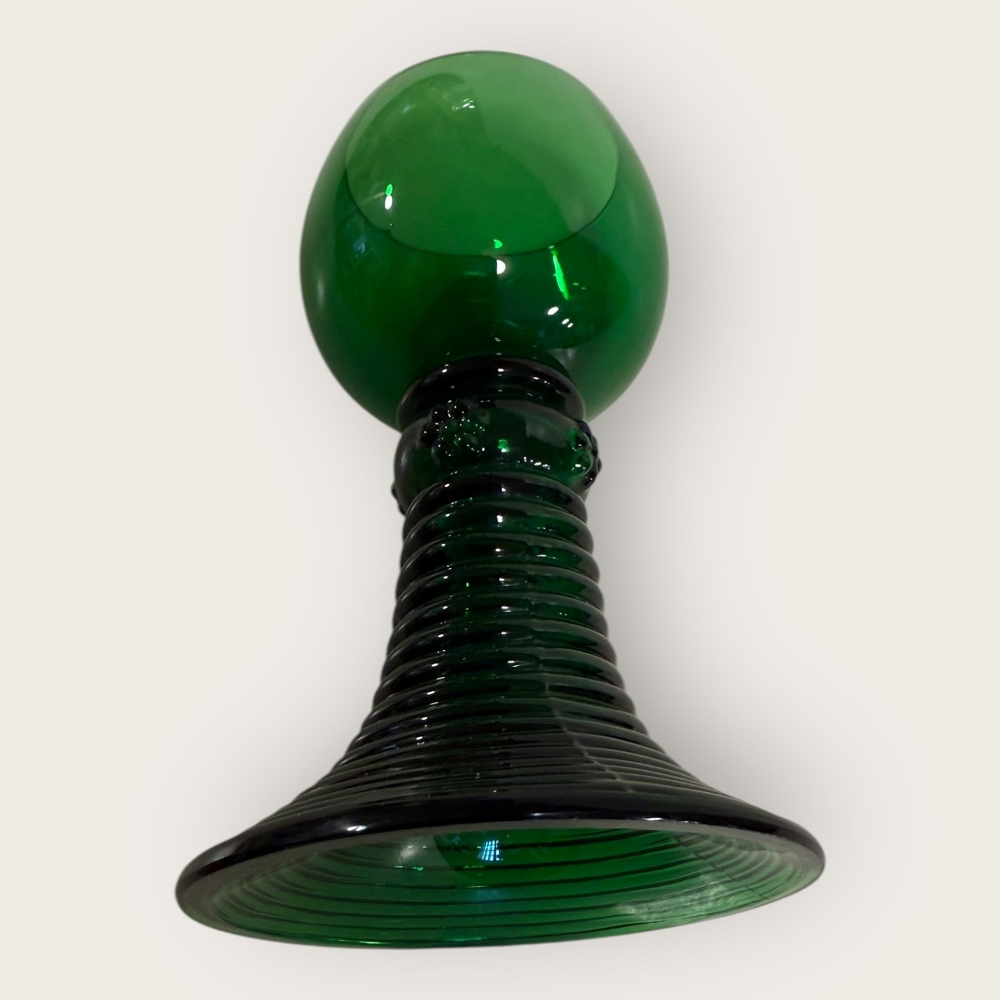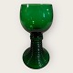 Grønt rømerglas fra Holmegaard med rosetter, Højde 12,7cm, diameter rand 5,4cm, fod 7,5cm