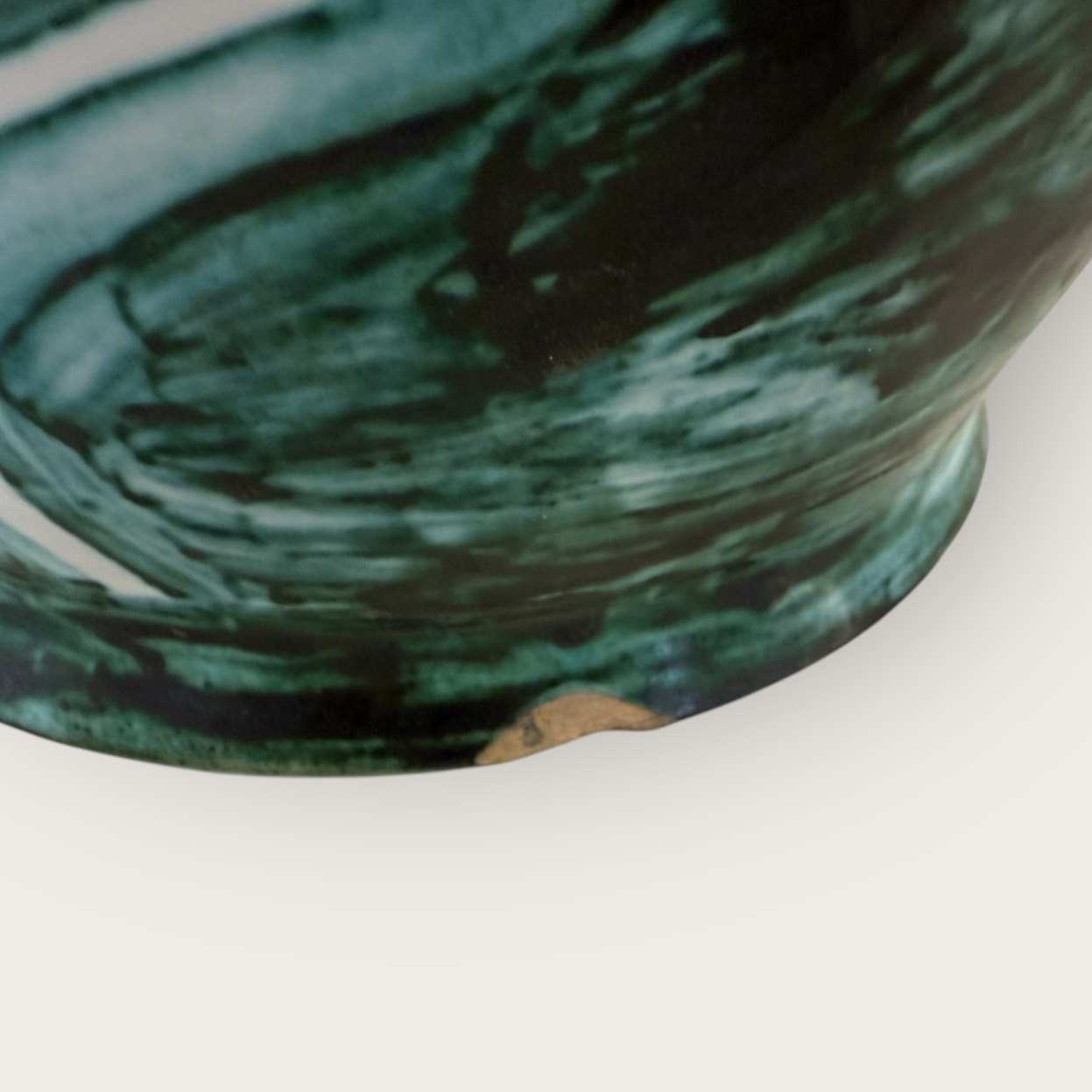 EDNO keramik Danmark, Stor retro gulvvase med basthank, Enkelt lille afslag ved bunden (se foto) ellers rigtig pæn stand, Højde 45 cm