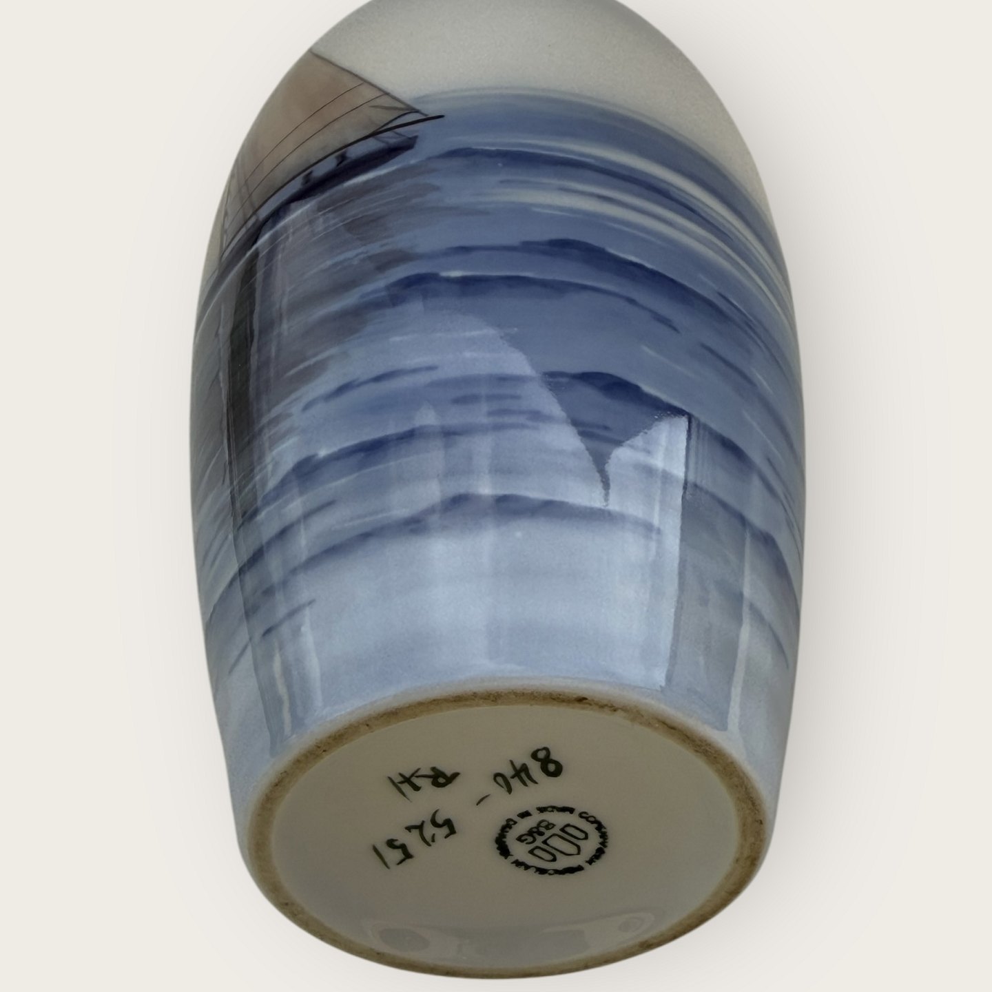 Bing & Grøndahl vase med sejlskib, # 840/5251, 1. sortering, pæn stand, 18 cm høj