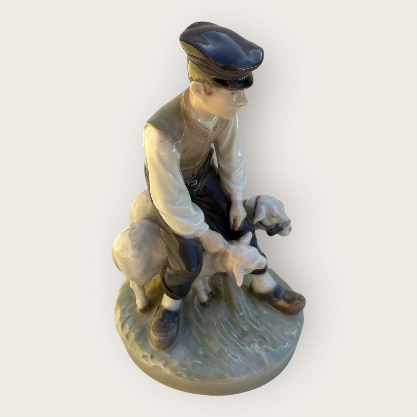 Royal Copenhagen, Vogterdreng med to får, # 627, 1. sortering, fin stand, 1. sortering, højde 20cm.