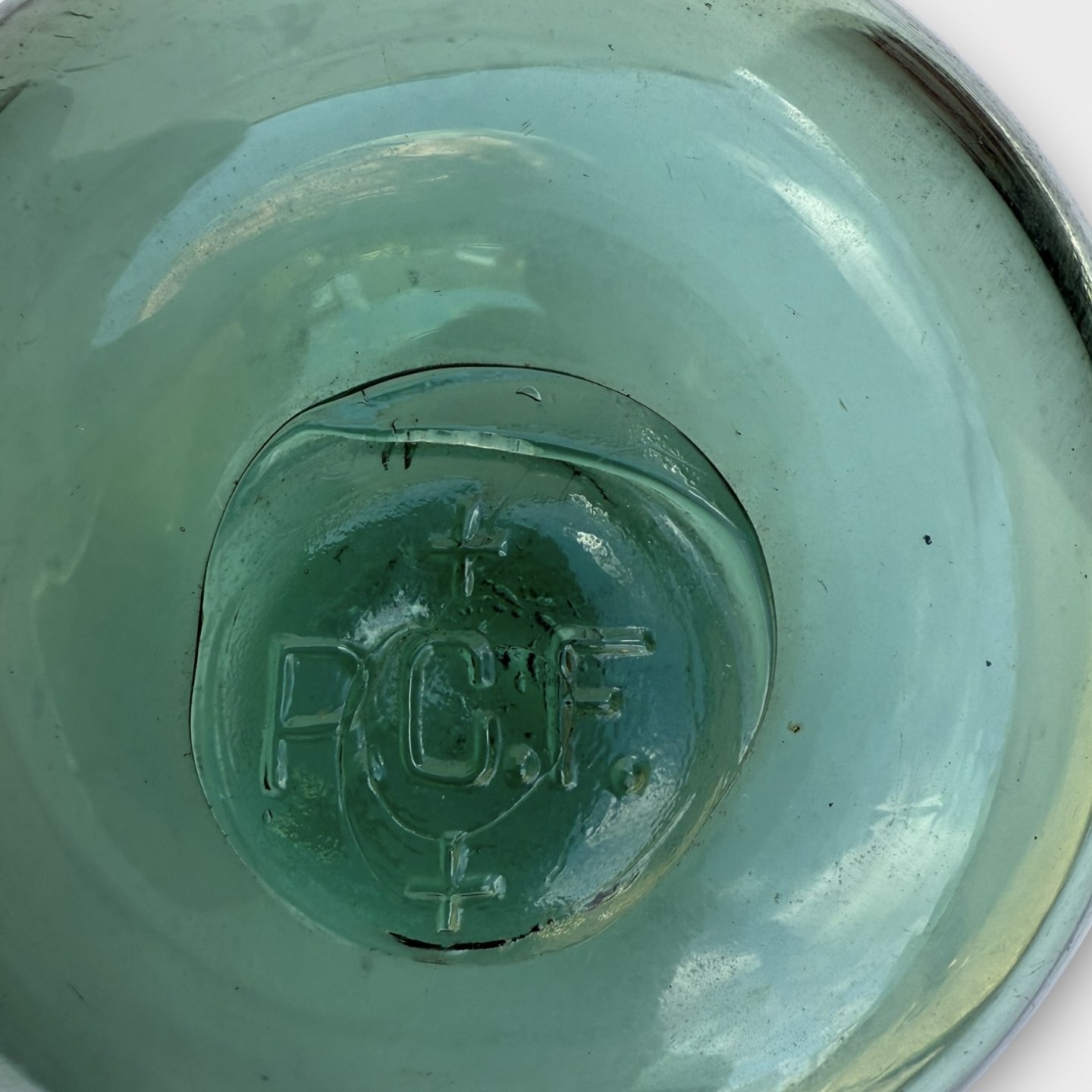 Glaskugle til fiskenet, diameter ca. 10cm, stemplet P.C.F. fin stand