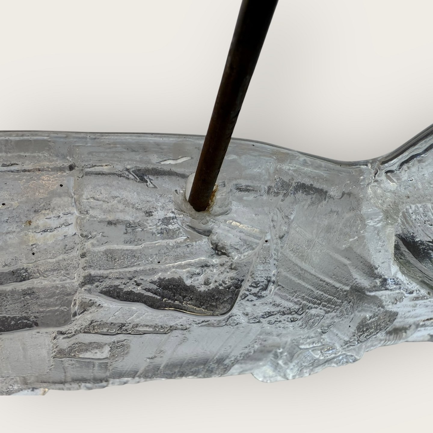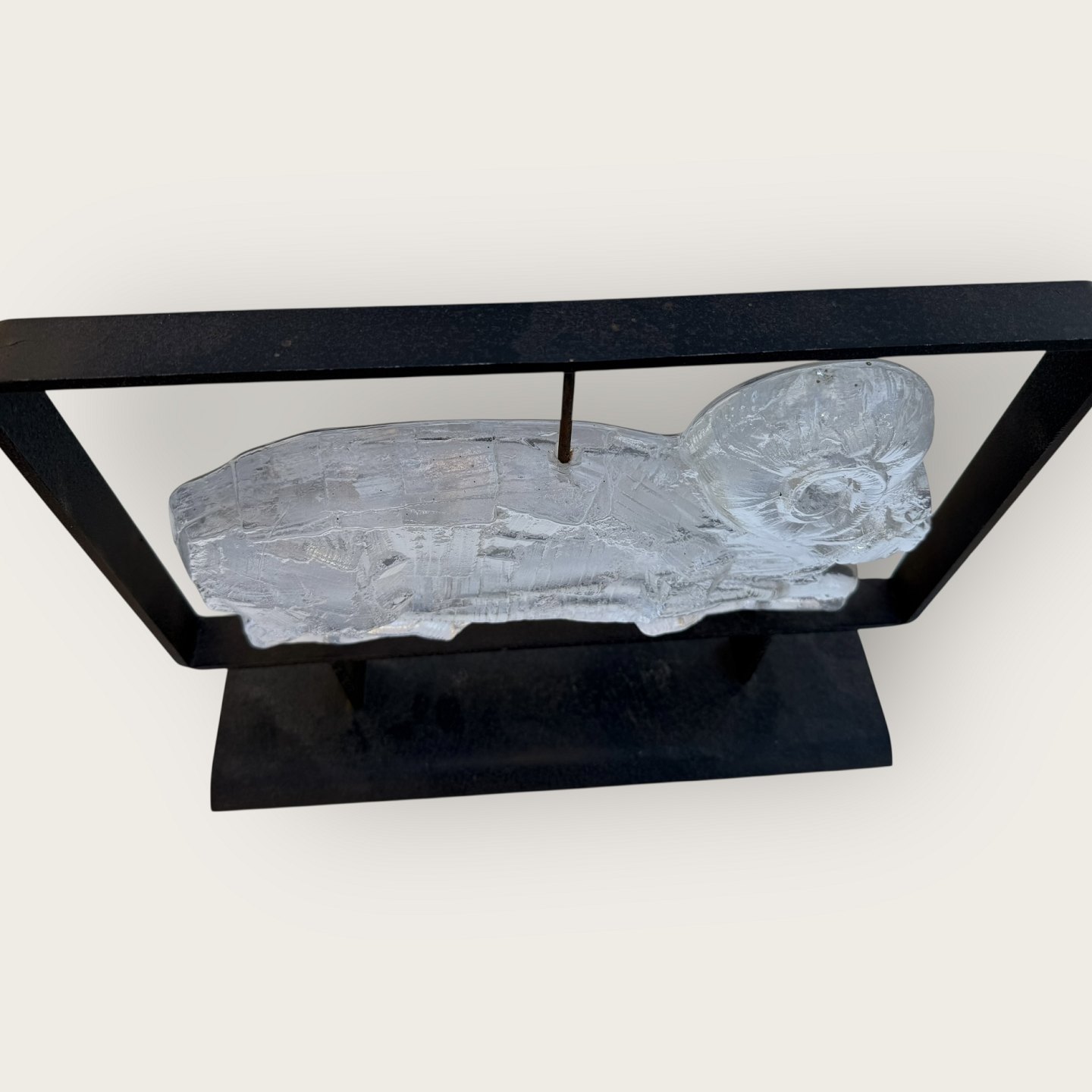 Kosta Boda, Erik Höglund, glasfigur af vædder monteret i metalramme; Mål: 25x33x11cm, * Lidt mærker i glasset omkring metalmonteringen (se foto) ellers rigtig fin stand*