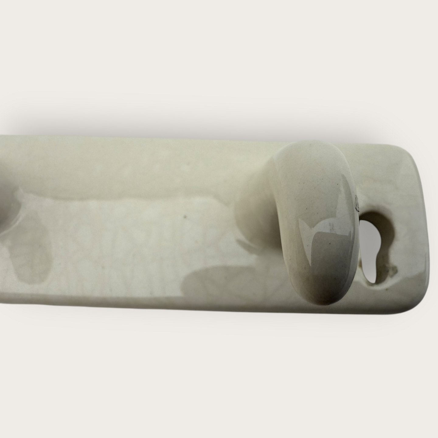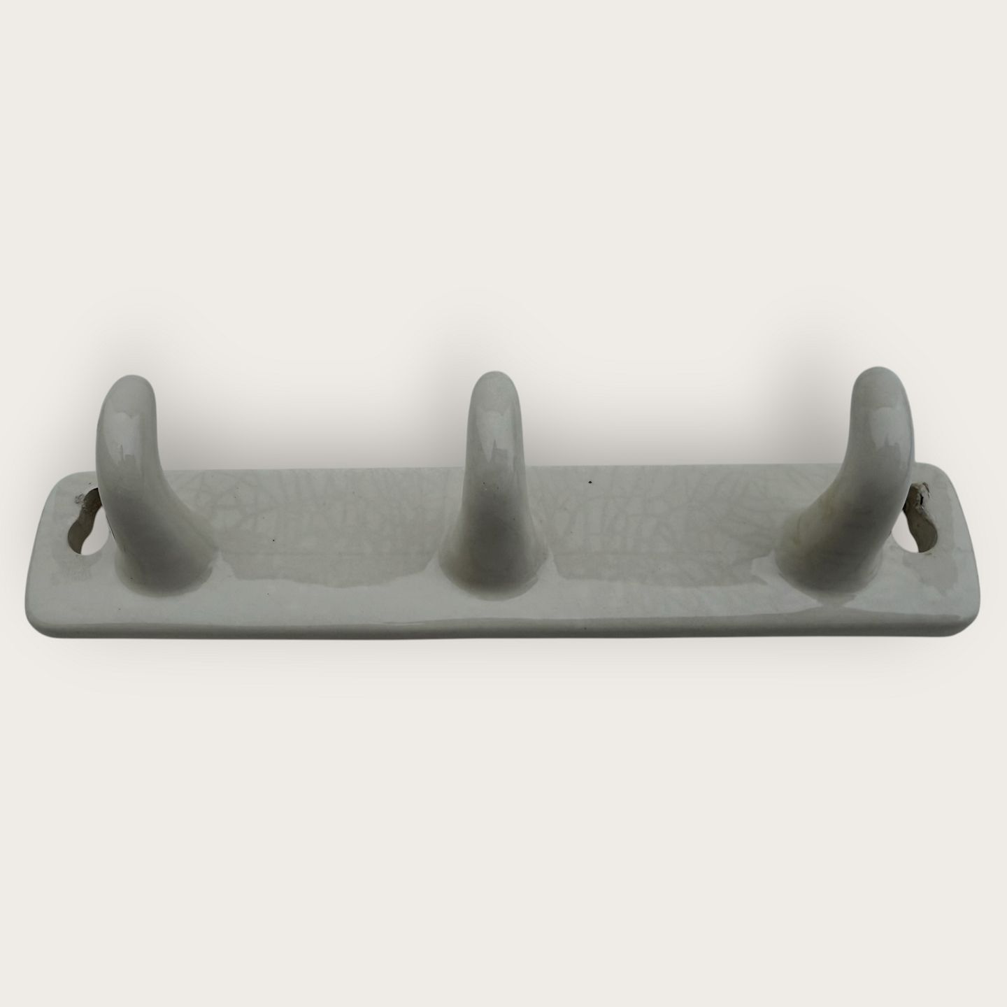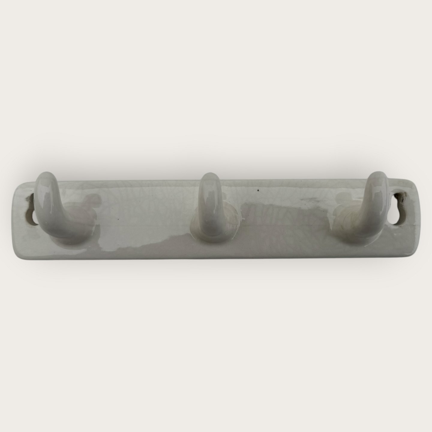 Aluminia, knagerække, 18x16cm, 3 knager * Med lidt patinering ved skruehuller og små krakeleringer under glasuren (se foto)