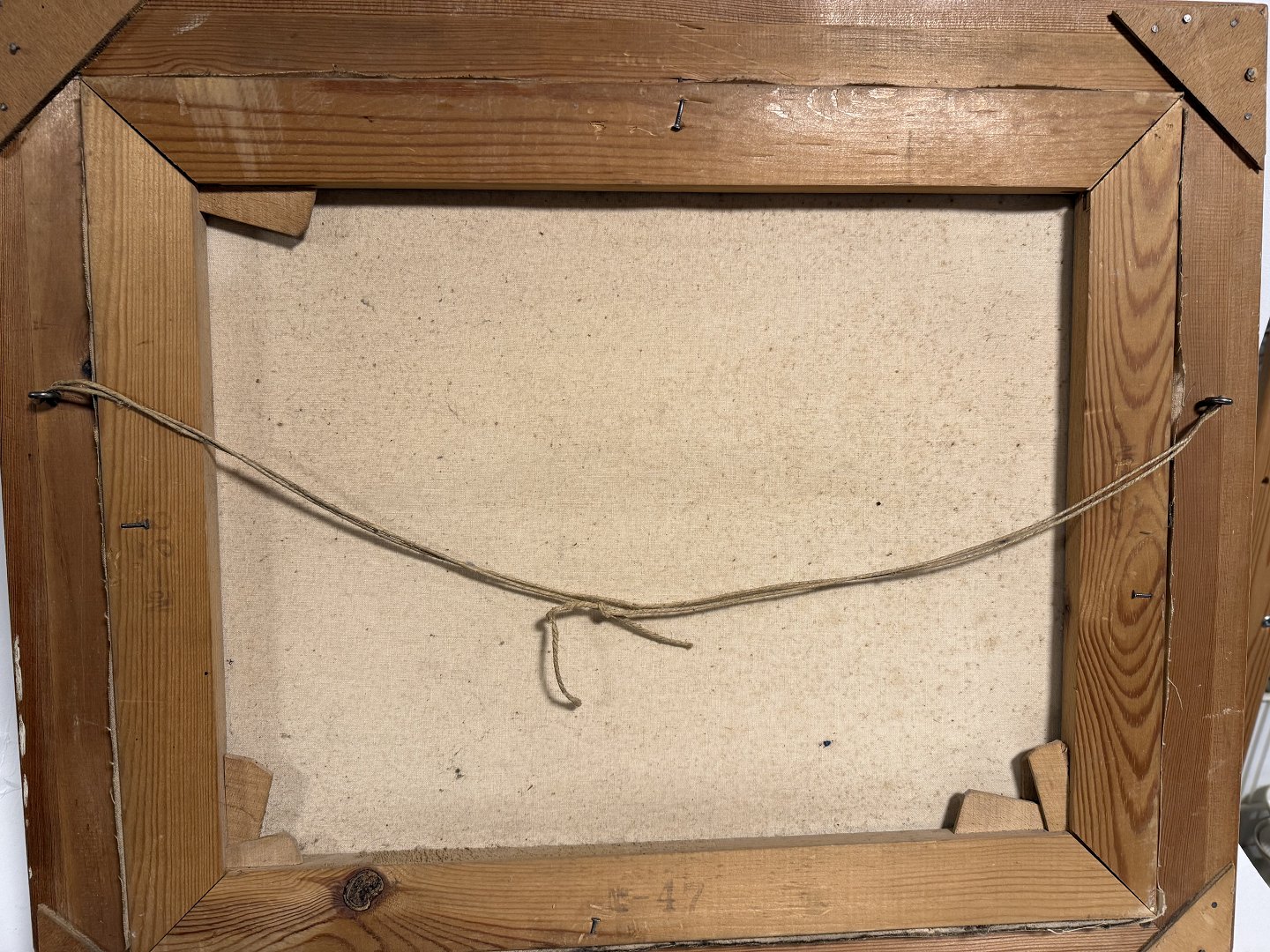 Bech Vogt-Sørensen (1919-?), Oliemaleri på lærred af hav og ø i måneskin, signeret Bech, Mål med ramme: 56,5x47,5cm