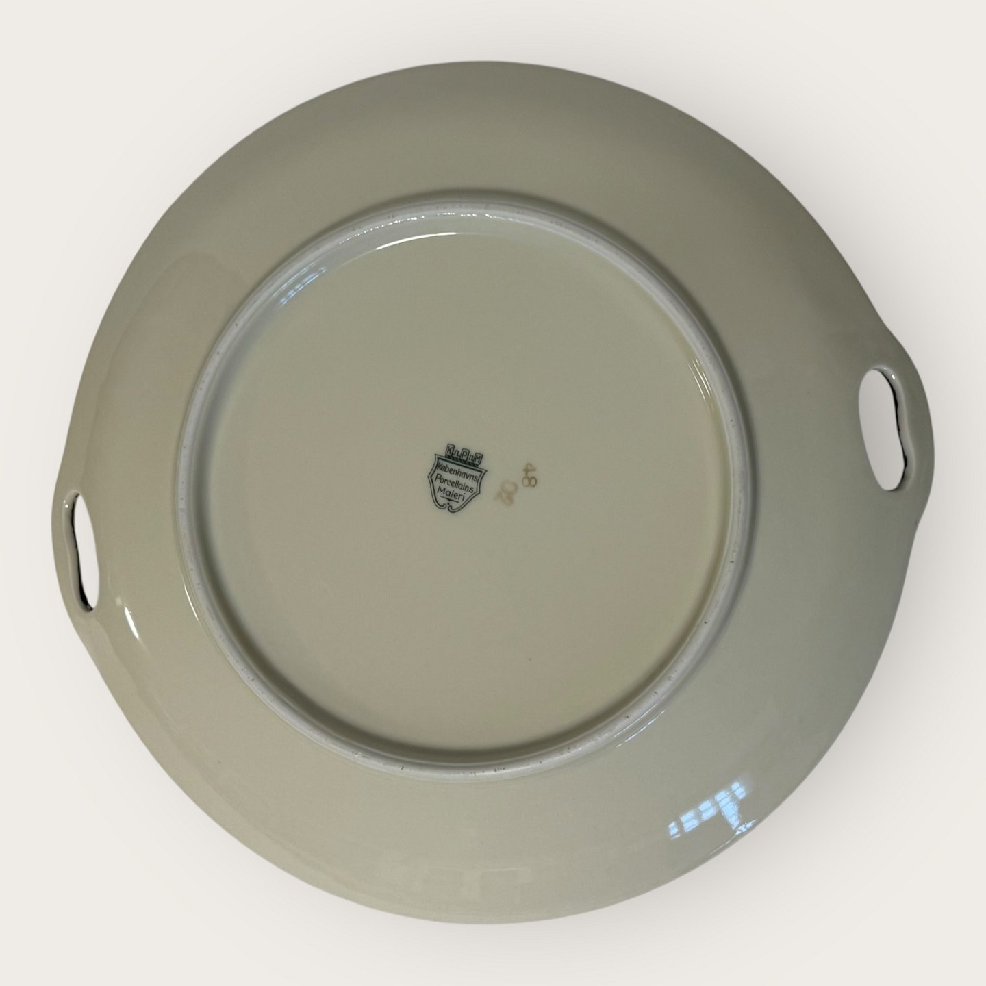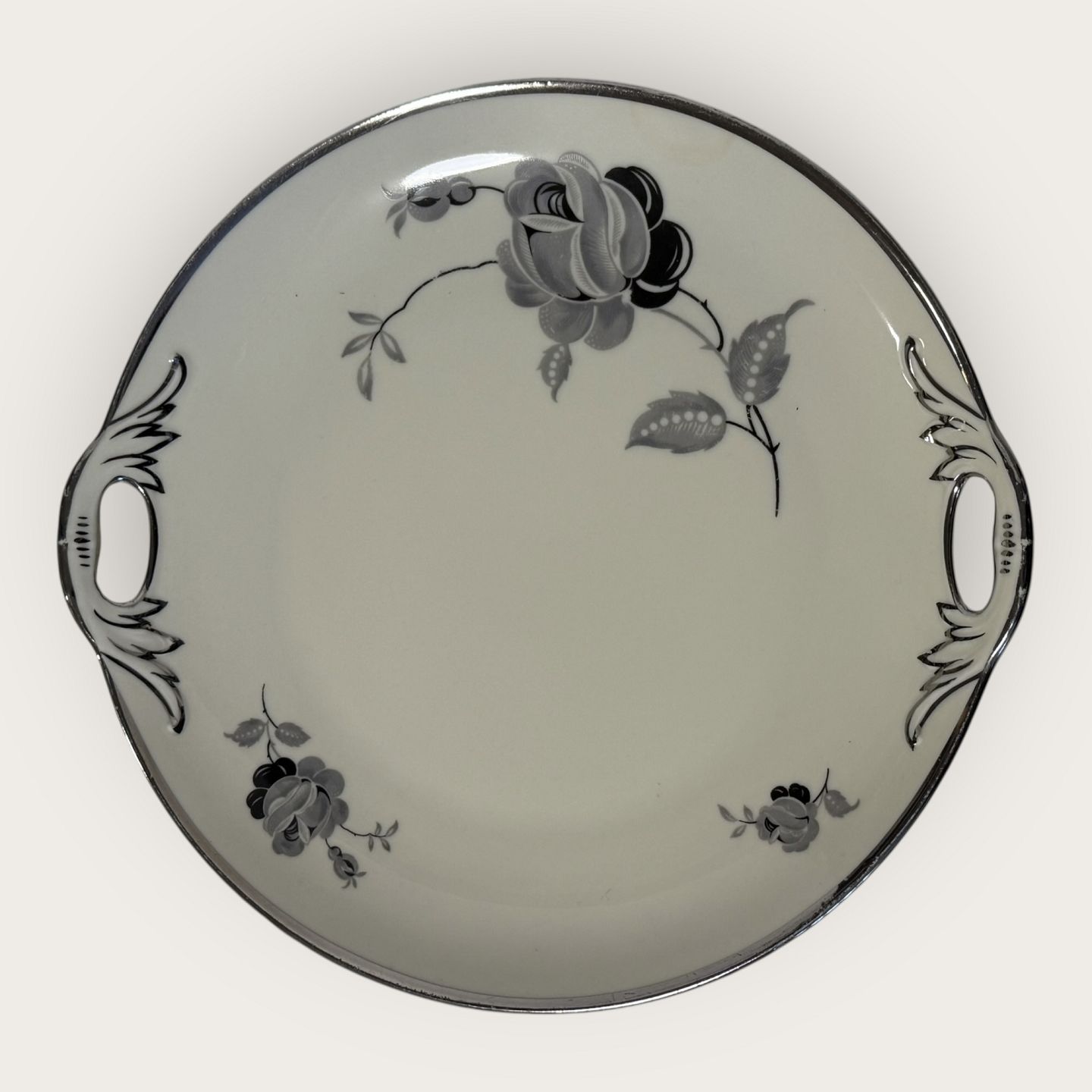 Sort rose, med Plantin kant, KPM, Lyngby, Kage fad med hanke, Mål: 24,5x25,5cm *Pæn stand*
