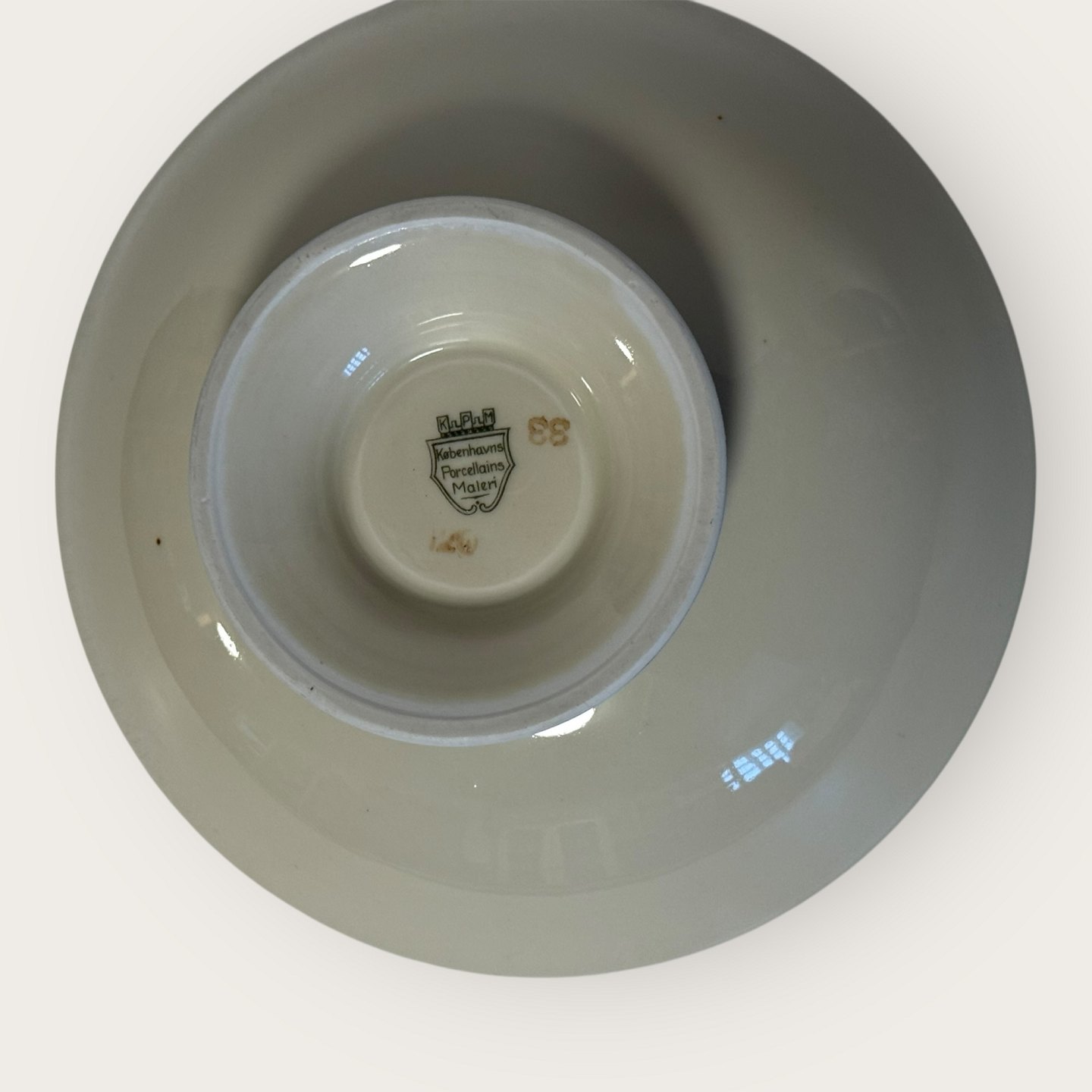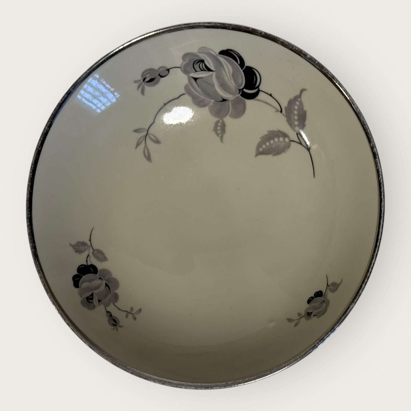 Sort rose, med Plantin kant, KPM, Lyngby, Skål på fod, 19cm i diameter, højde 6,5cm *lidt slid på sølvkanten ellers pæn stand*