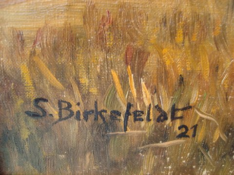 Svend Vilhelm Birkefeldt (1890-1966): Høstlandskab med tysk landsby med kirke i baggrunden 1921. Olie på lærred. Sign.: S. Birkefeldt - 21. 40x53 (51x65)