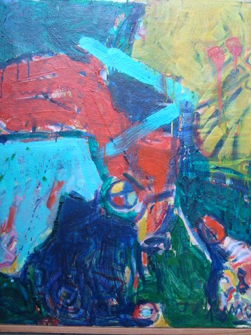 Typisk maleri af Børge Wesing. Wesing var autodidakt, men var på adskellige censurerede udstillinger bl.a. Charlottenborg og KP 1985 som nærværede.