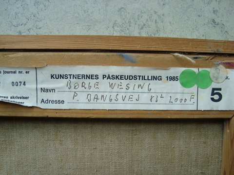 Typisk maleri af Børge Wesing. Wesing var autodidakt, men var på adskellige censurerede udstillinger bl.a. Charlottenborg og KP 1985 som nærværede.