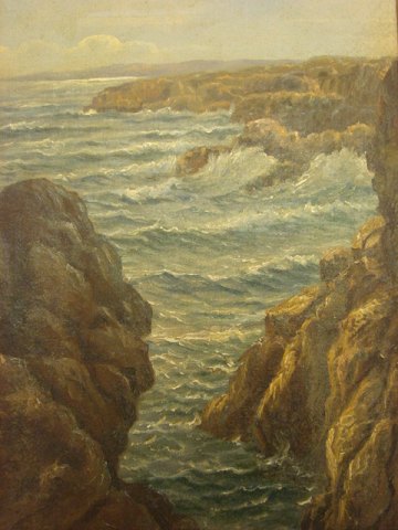 Alfred Märtens (1888-1936): Bornholmsk kystparti "Den Sorte Ovn" Olie på lærred. Sign.: AM Bagpå blindramme betegnet "Den Sorte Ovn Bornholm" 35x25 (47x37)