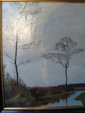 Ubekendt kunstner (19/20 årh): Nøgne træer ved vandløb. Olie på lærred. Nyrenset. Usigneret. År ca. 1900 29x34 (39x44)
