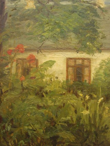 Ubekendt kunstner (19/20 årh): Hovedbygning til en større gård med have. Usigneret. 51x67 (60x75)