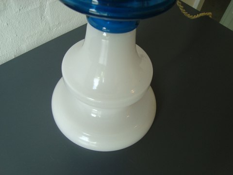 Fod af hvid opaline og petroleumsholder af transperent turkis glas.